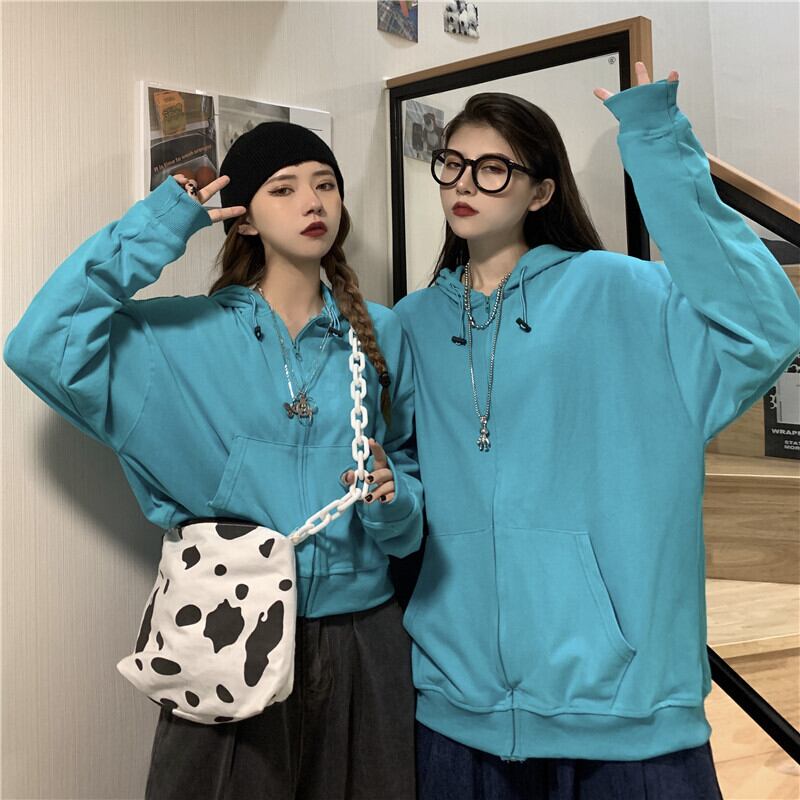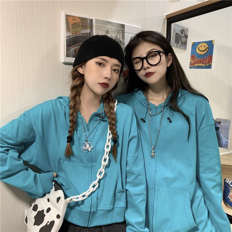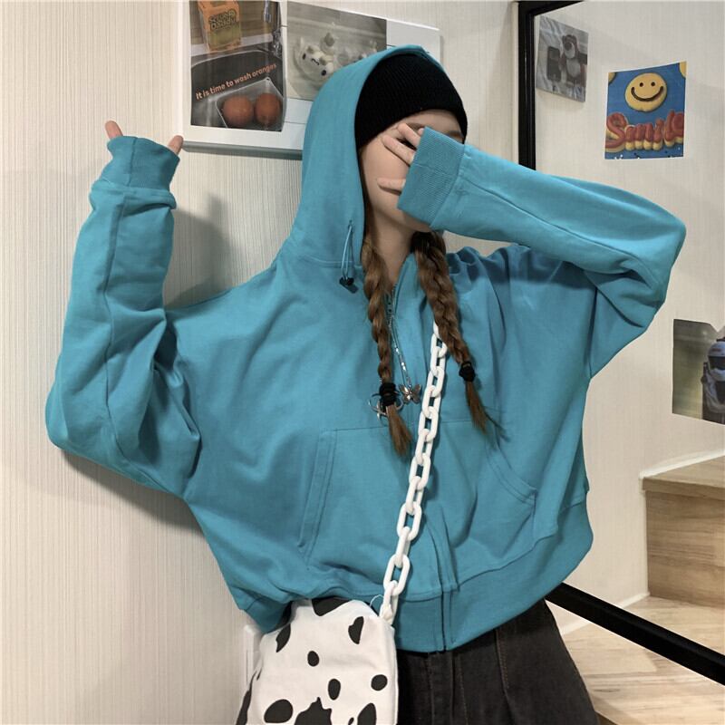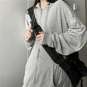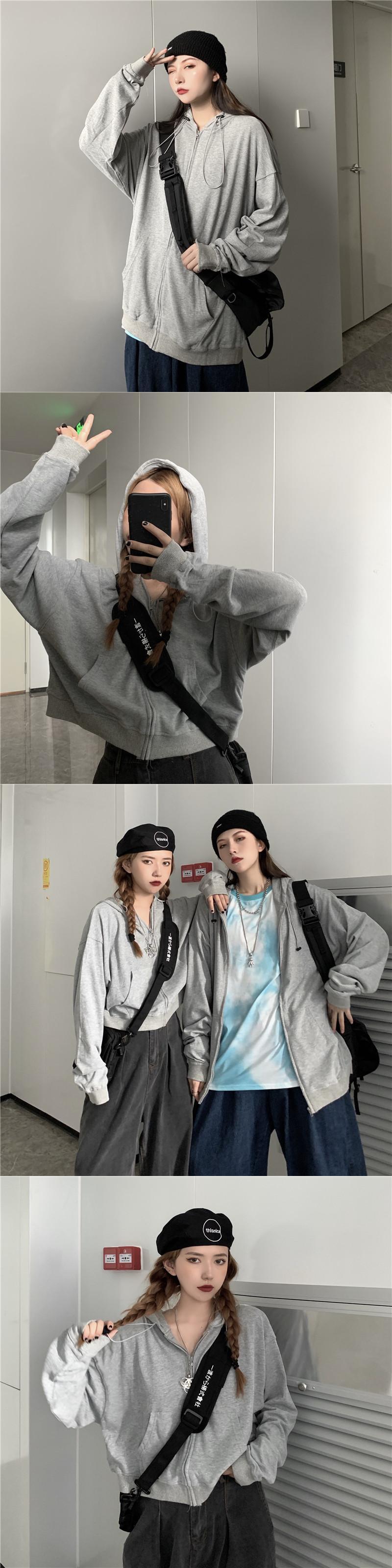 ジャケット レディースルーズ韓国ファッションフードグレークロップドトップス 秋物ジッパーセーター ロング オータム スタイル 長袖 コーデ モノクロ Studio42284870574 | pLegLad Studios