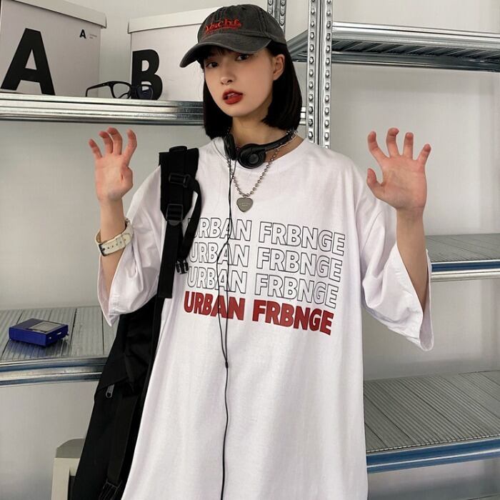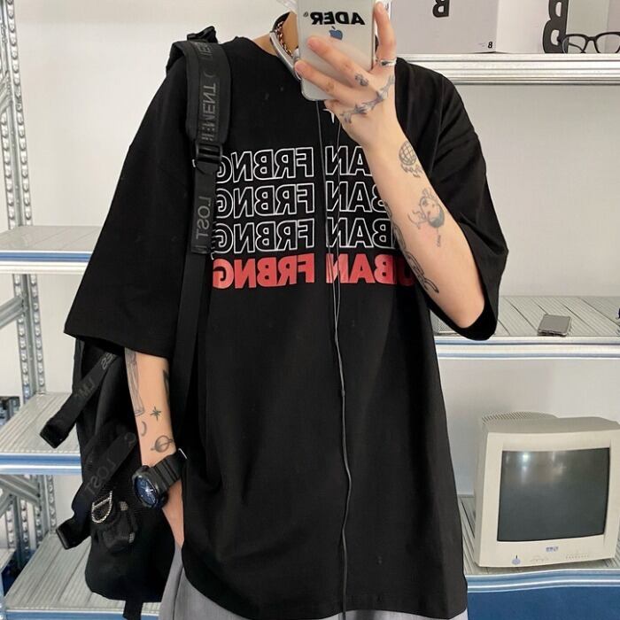 ラウンドネックTシャツレディース夏服韓国ファッションNEWスタイルプリントルーズトップス 原宿 夏物 Oネック コーデ モノクロ Studio76125640006 | pLegLad Studios