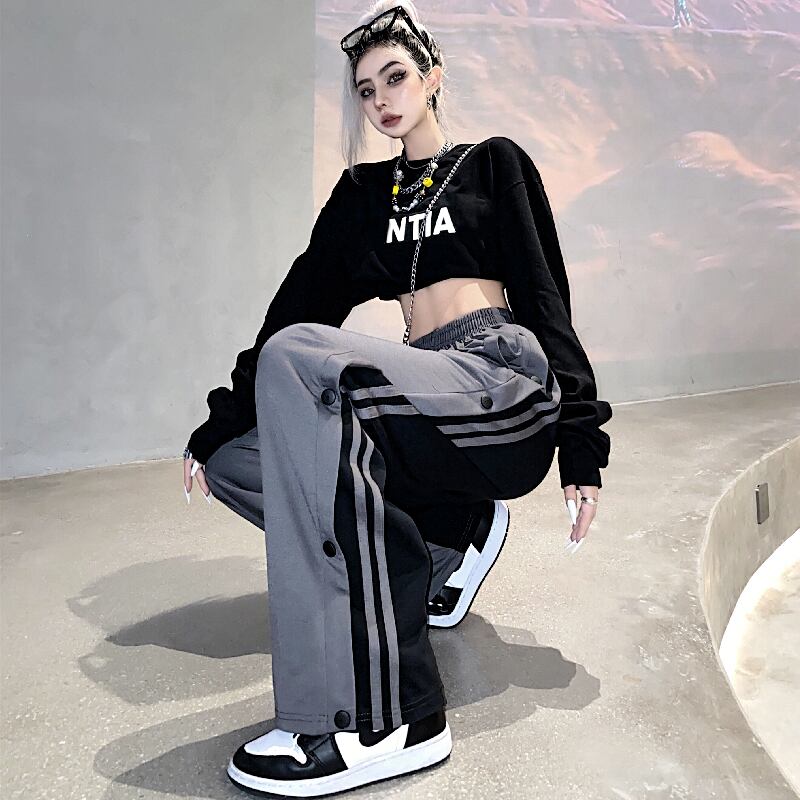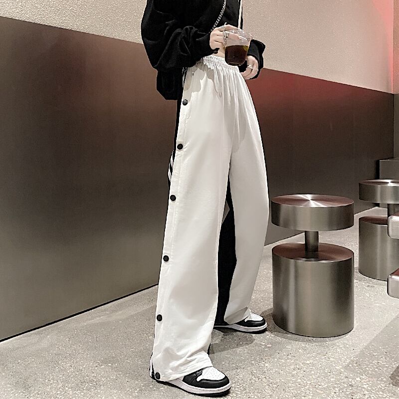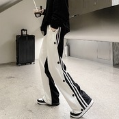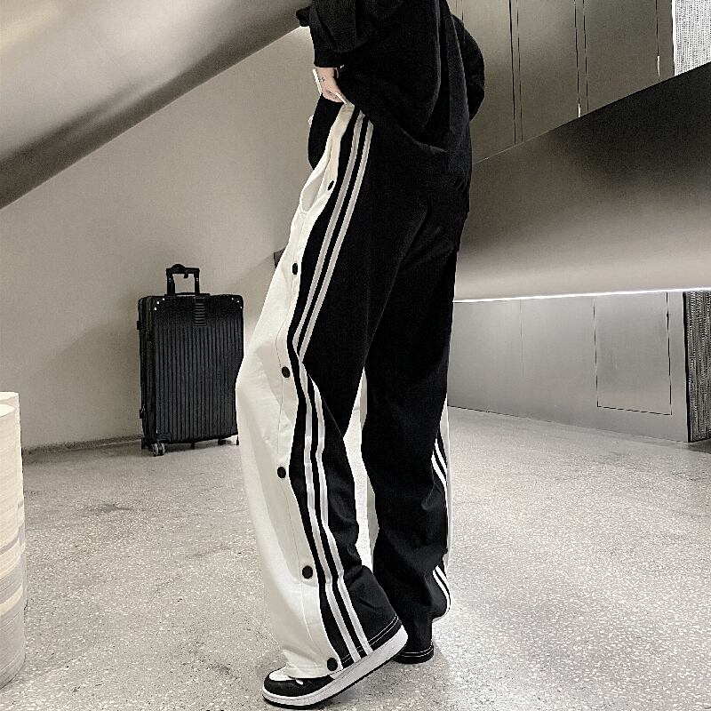 ハイウェストカジュアルパンツ 秋物スタイル韓国ファッションストライプルーズ レトロ オータム ステッチ ウエスト コーデ モノクロ Studio80983622434 | pLegLad Studios