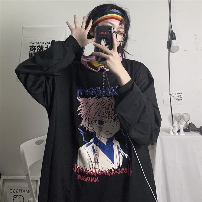 セーター レディース秋物韓国ファッションプリントルーズラウンドネックトップス ロング オータム Oネック スタイル 長袖 コーデ モノクロ Studio82231635480 | pLegLad Studios