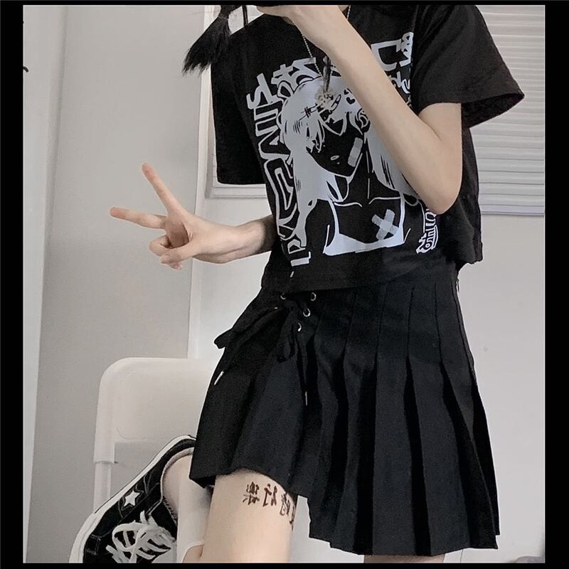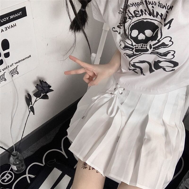 クロススカート レディース夏服韓国ファッションNEWハイウェストウェストプリーツショート 夏物 ボーイズ スタイル ウエスト コーデ モノクロ Studio84141749891 | pLegLad Studios