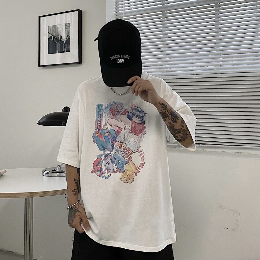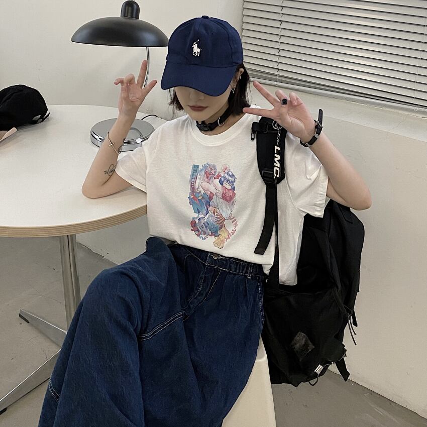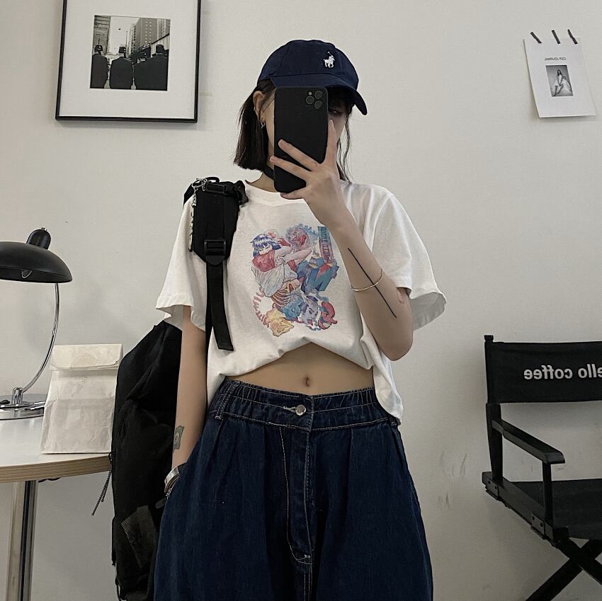 ラウンドネックカジュアルジャケット レディース夏服韓国ファッションNEWスタイルルーズTシャツ 原宿 夏物 Oネック コーデ モノクロ Studio21367052942 | pLegLad Studios