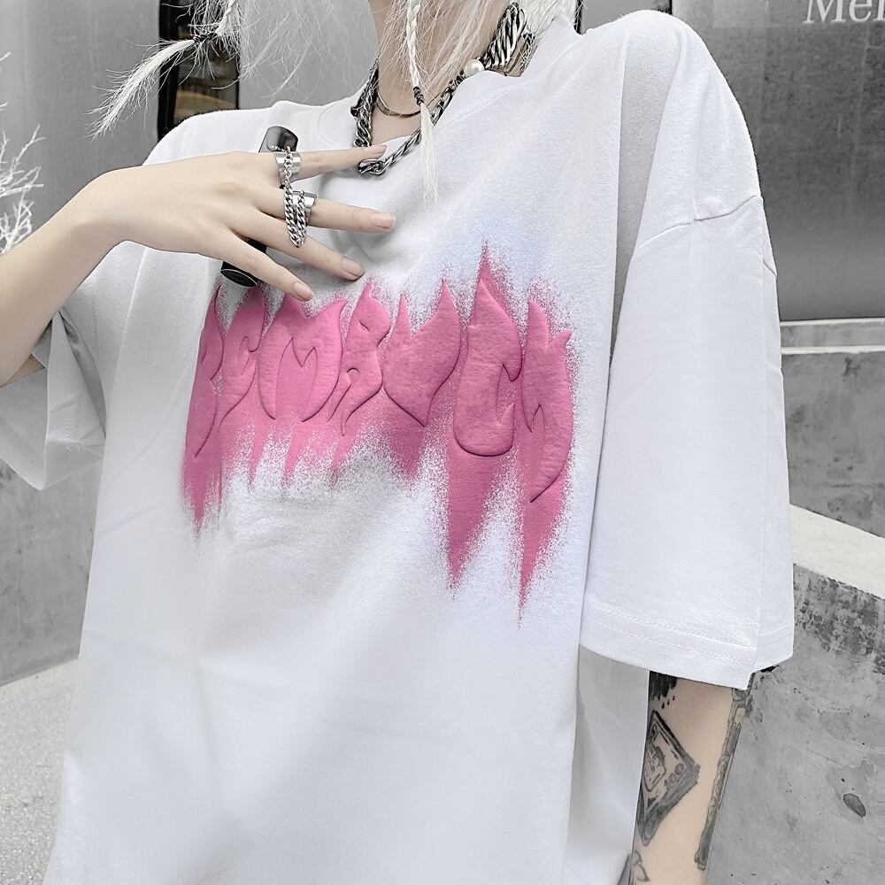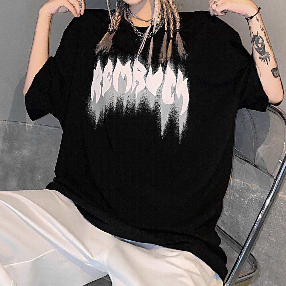 ラウンドネックTシャツレディース夏服韓国ファッションNEWダークプリントルーズトップス 夏物 Oネック スタイル コーデ モノクロ Studio44712074183 | pLegLad Studios