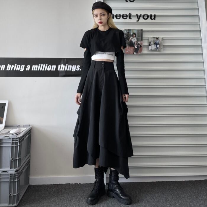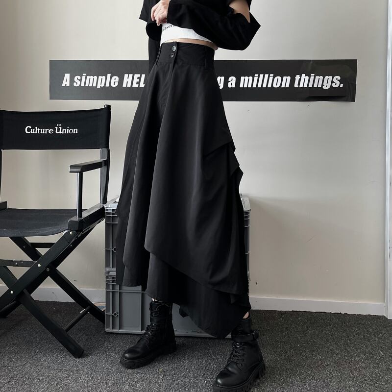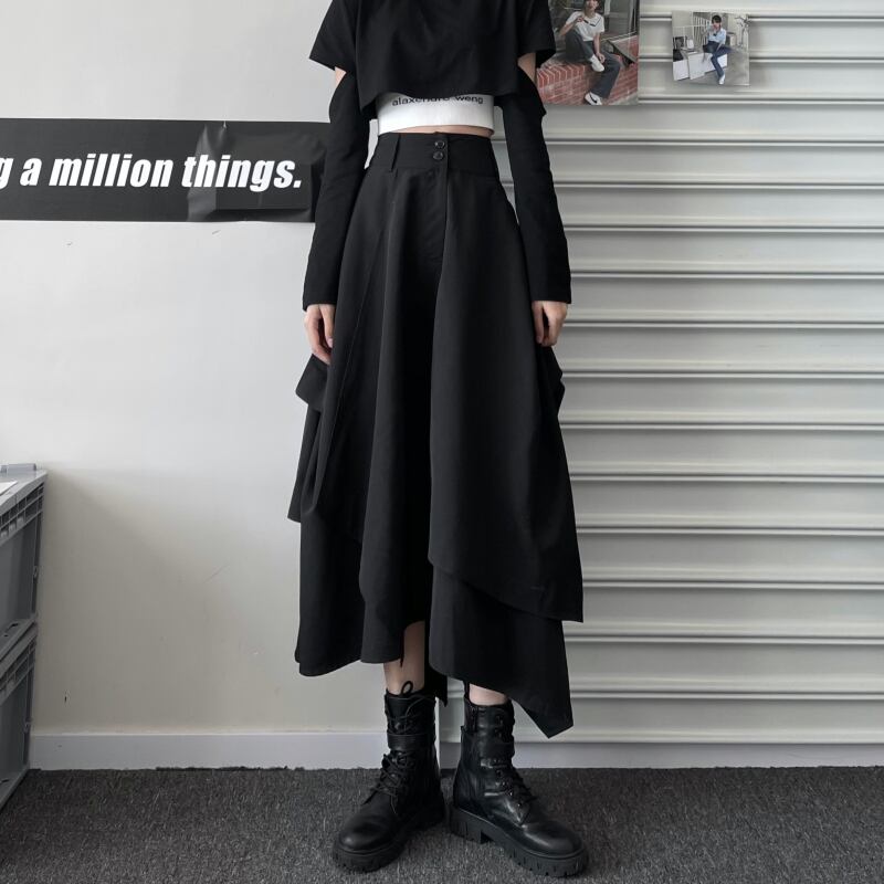 スカート レディース夏服韓国ファッションNEWダークストレッチウェスト エラスティック 伸縮 夏物 ボーイズ スタイル ウエスト ミドル丈 コーデ モノクロ Studio92488624736 | pLegLad Studios