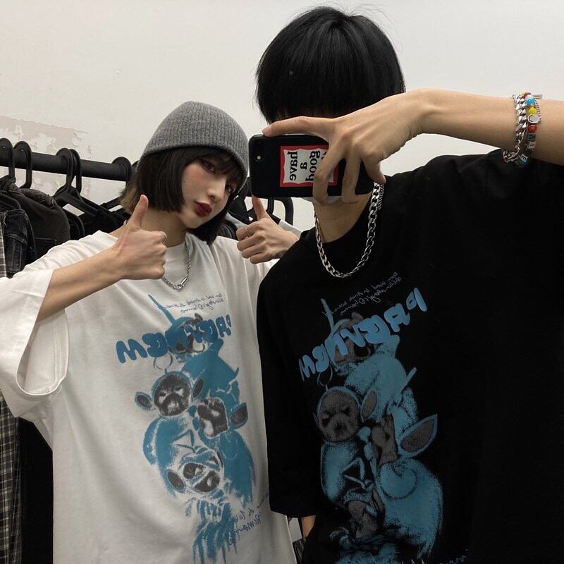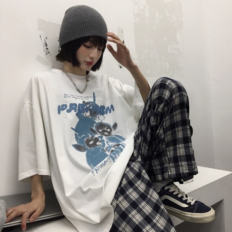 スタンダードTシャツシャツ レディース夏服韓国ファッションNEWラウンドネックカジュアルルーズゆったり レトロ 夏物 Oネック ボーイズ スタイル コーデ モノクロ Studio26569025980 | pLegLad Studios