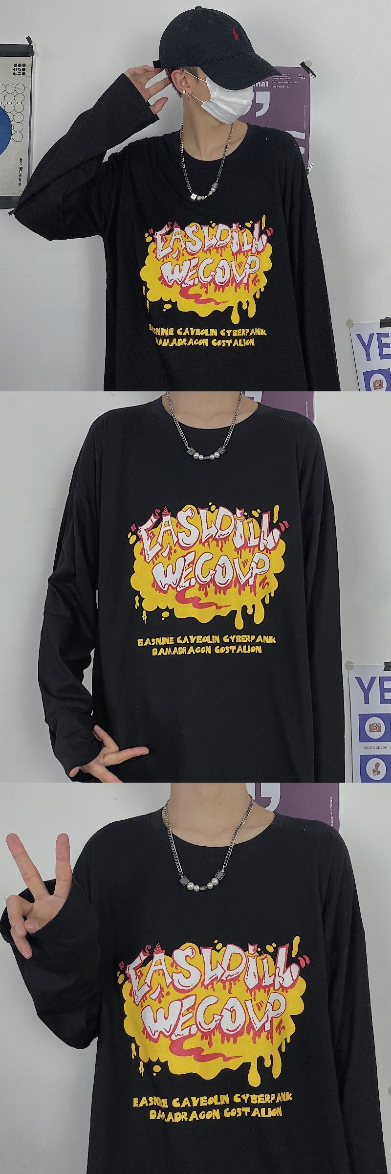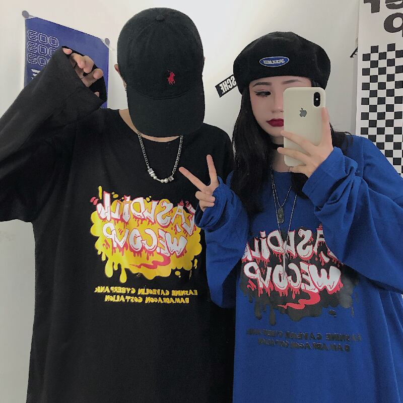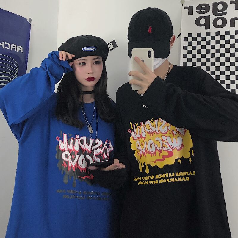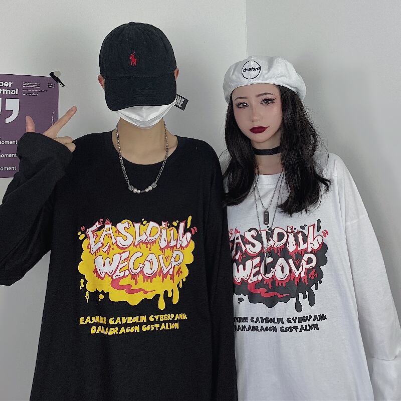 ゆったりシャツ レディース秋物韓国ファッションNEWラウンドネックルーズTシャツ ロング オータム Oネック ボーイズ スタイル 長袖 コーデ モノクロ Studio56263911949 | pLegLad Studios