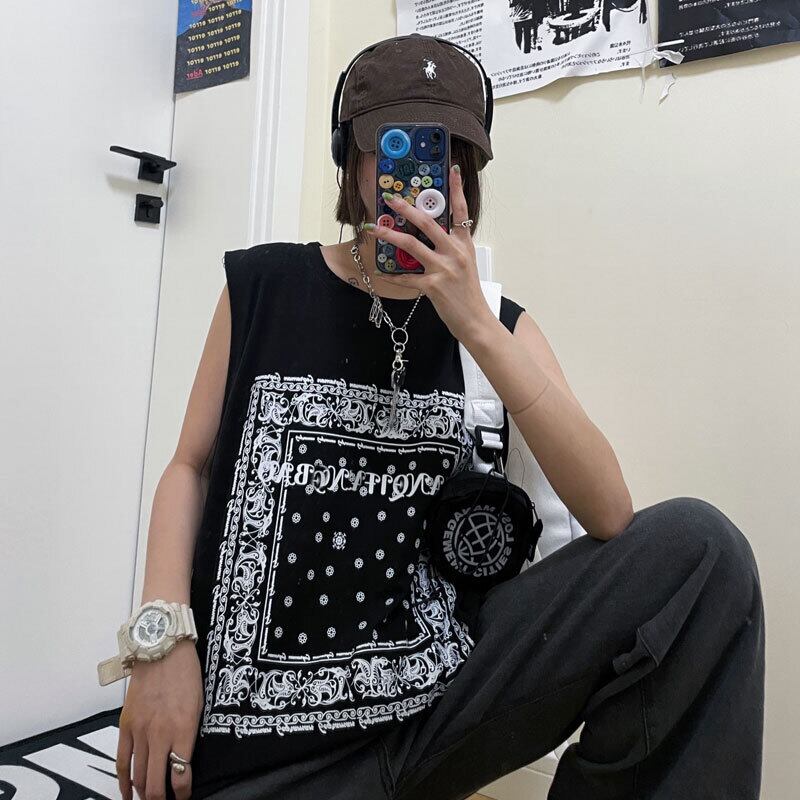 夏服ノースリーブTシャツレディース韓国ファッションNEWスタンダードFlowerデザイン ルーズトップス レトロ 夏物 フラワーデザイン ボーイズ スタイル コーデ モノクロ Studio79954473671 | pLegLad Studios