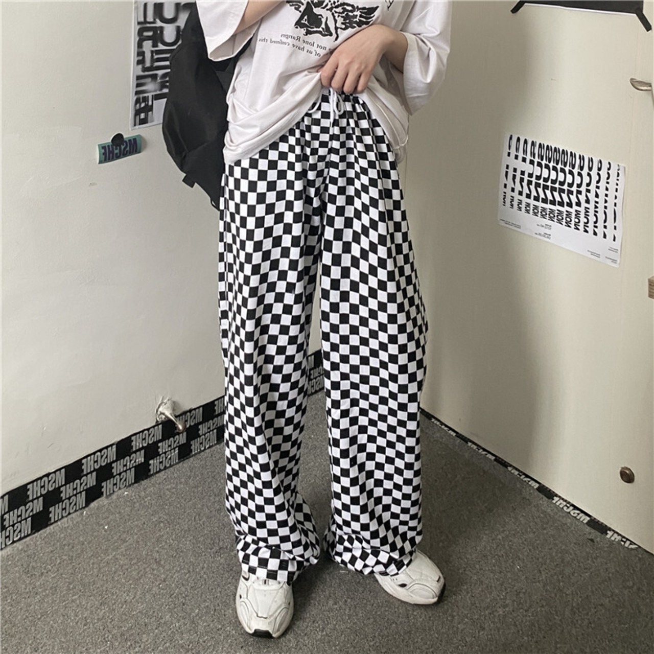 夏服薄手カジュアルパンツ 韓国ファッションブラックホワイト格子柄ハイウェストウェストワイドレッグ 夏物 ワイドパンツ スタイル ウエスト コーデ モノクロ Studio38969131981 | pLegLad Studios