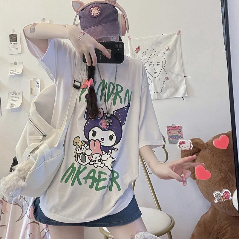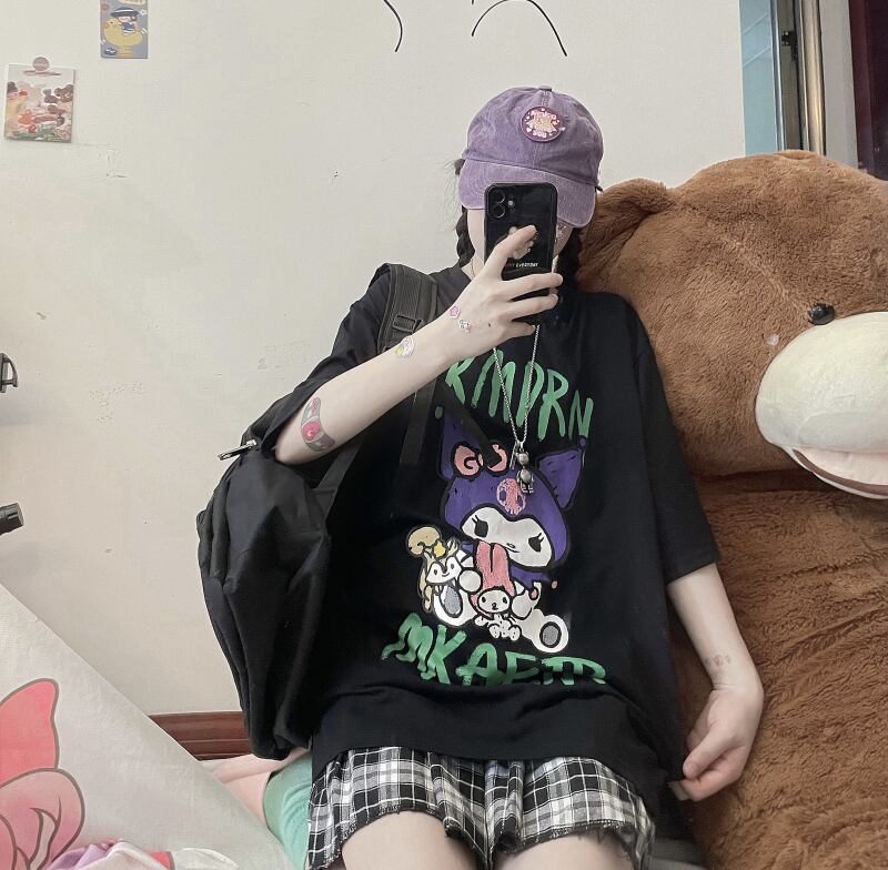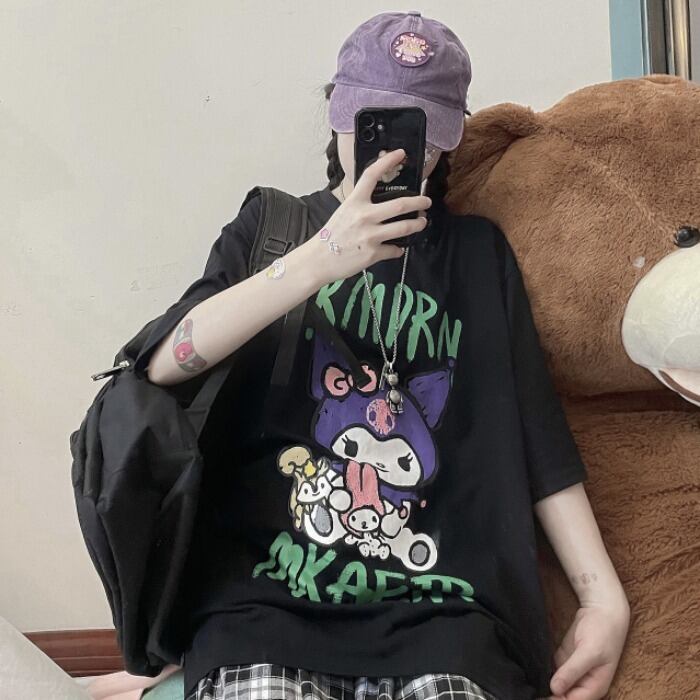 夏服Tシャツレディーススタイル韓国ファッションNEWスタンダードプリントルーズラウンドネックトップス レトロ 夏物 Oネック コーデ モノクロ Studio27447904631 | pLegLad Studios