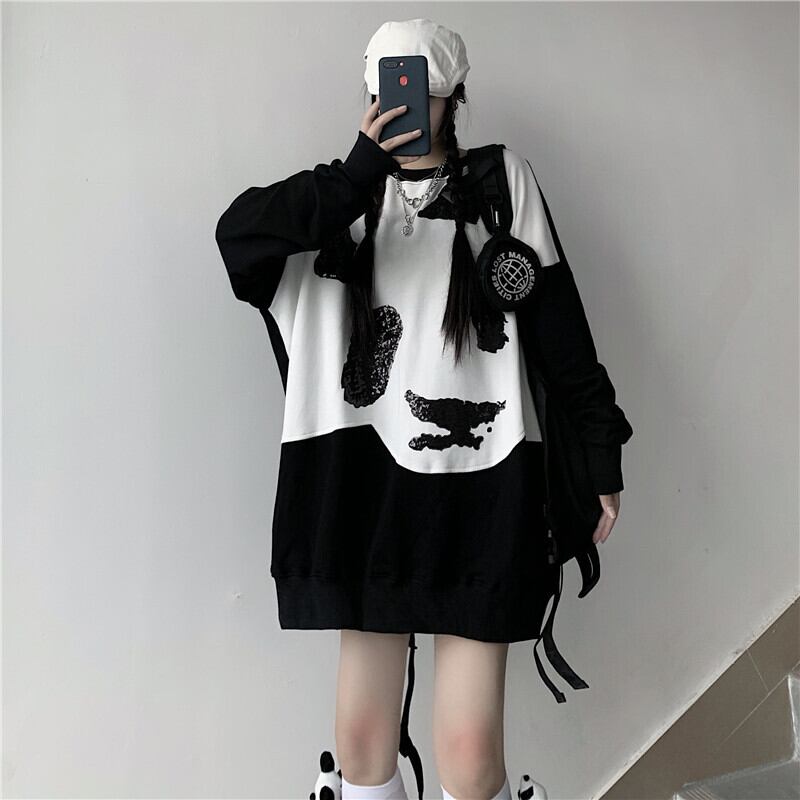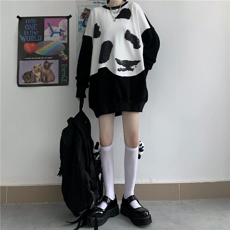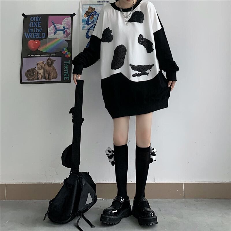 秋物韓国ファッションNEWプリント柄ルーズセーター ソックス ロング オータム タイツ ストッキング スタイル 長袖 コーデ モノクロ Studio56147264077 | pLegLad Studios