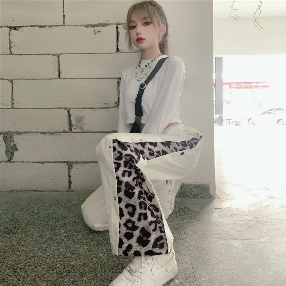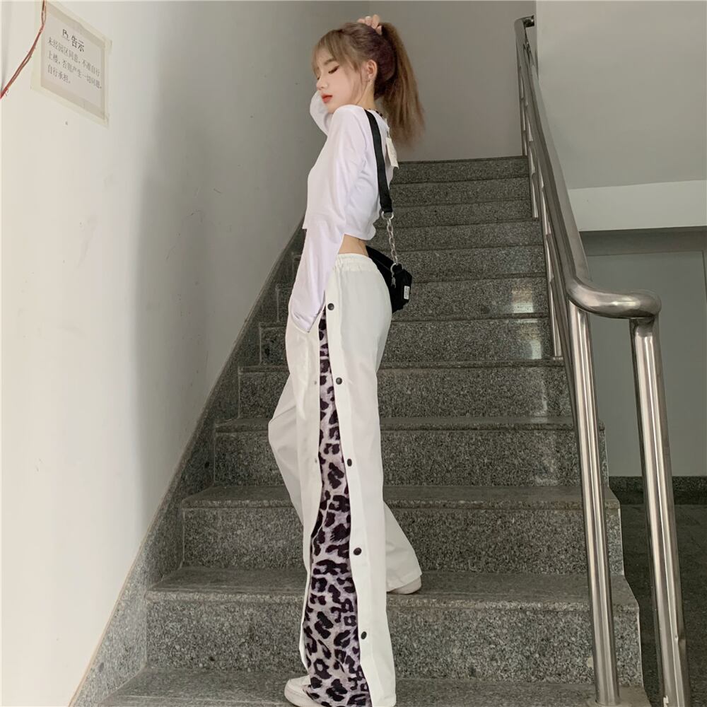 レオパードプリント柄カジュアルパンツ レディース夏服スタイルNEWブレストルーズワイドレッグ ストリート 夏物 ワイドパンツ ボーイズ コーデ モノクロ Studio69549284944 | pLegLad Studios