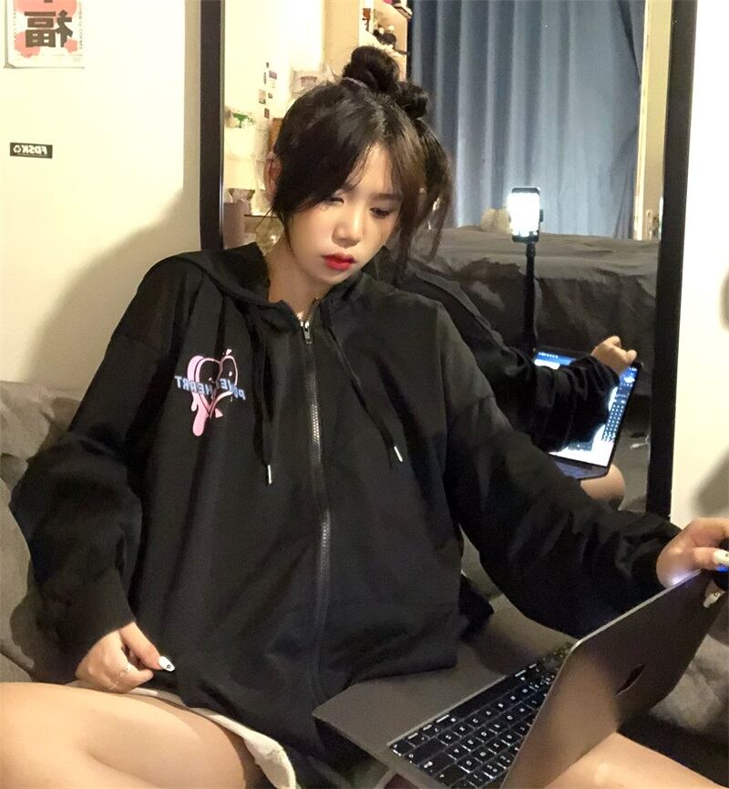 スタイルルーズフードセーター レディース秋物韓国ファッションNEWプリントカジュアルジャケット 原宿 オータム コーデ モノクロ Studio29620440913 | pLegLad Studios