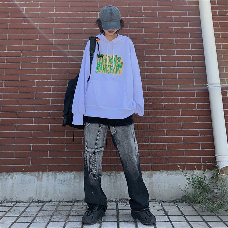 スタイルダークセーター レディース秋物韓国ファッションNEWルーズフードプルオーバー トップス ロング 原宿 オータム 長袖 コーデ モノクロ Studio40937314224 | pLegLad Studios