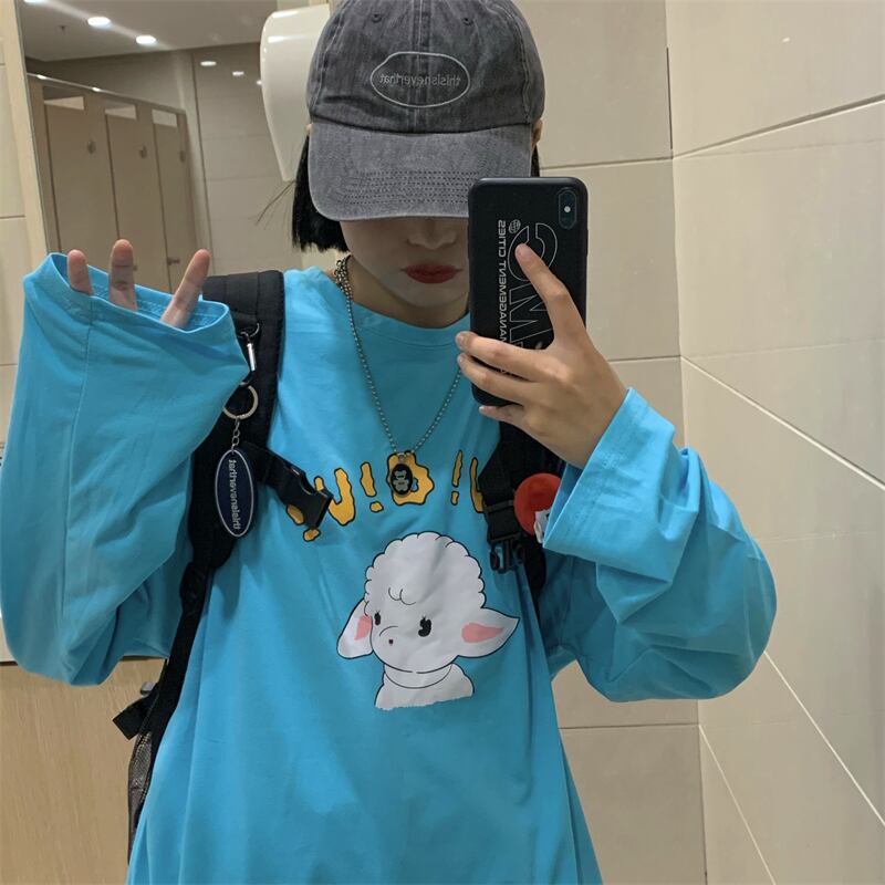 スタイルTシャツシャツ レディース秋物韓国ファッションNEWスタンダードルーズゆったり ロング レトロ 原宿 オータム 長袖 コーデ モノクロ Studio77604193555 | pLegLad Studios