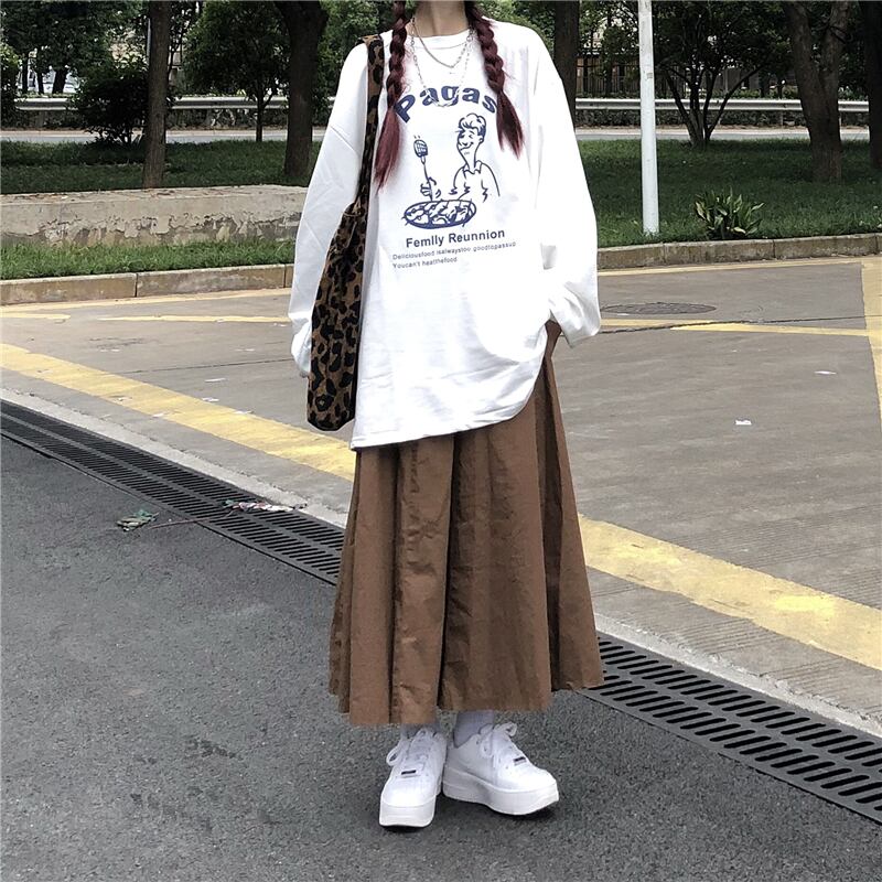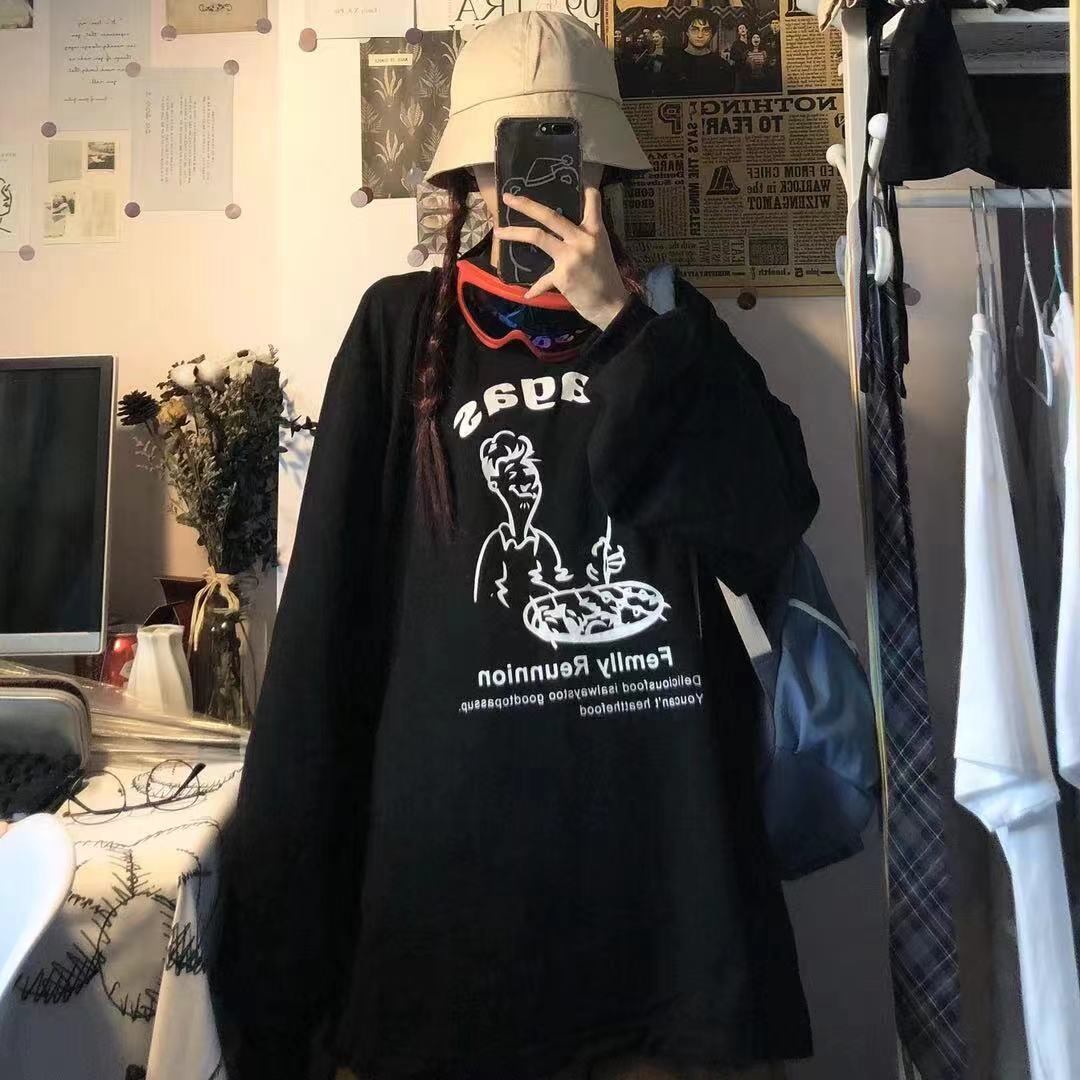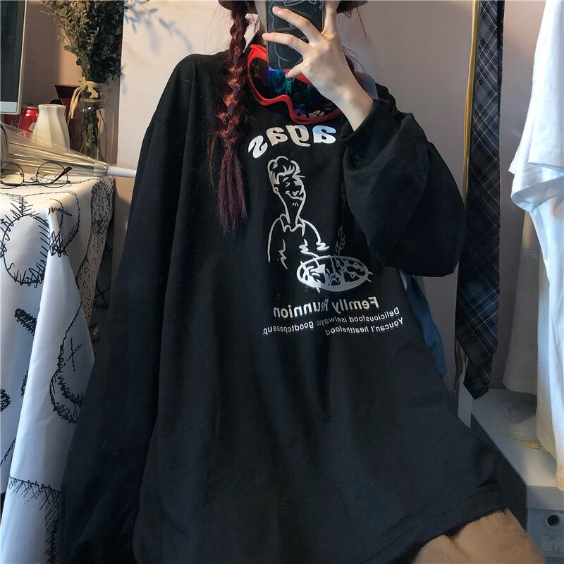 スタイルセーター レディース秋物韓国ファッションNEWプリントラウンドネックトップス ロング 原宿 オータム Oネック 長袖 コーデ モノクロ Studio62800539378 | pLegLad Studios