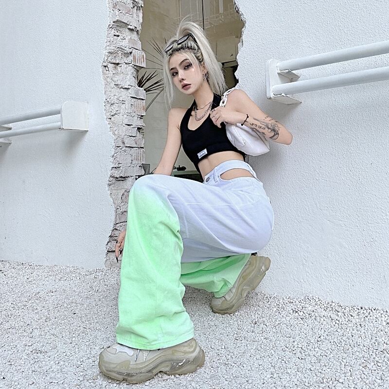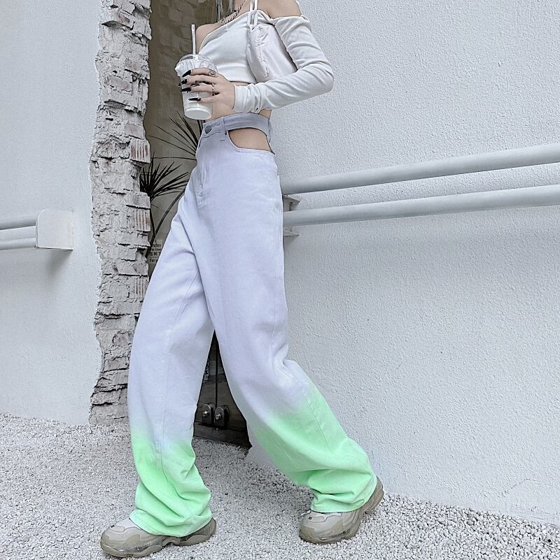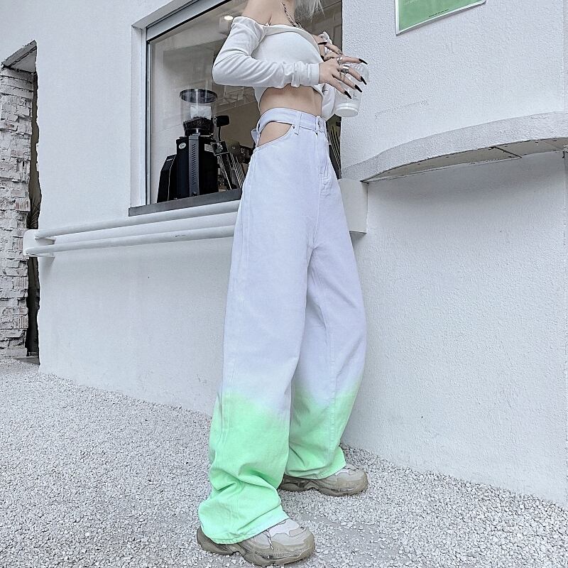 カラージーンズ レディース夏服スタイル韓国ファッションハイウェストウェストワイドレッグパンツ 夏物 ワイドパンツ ウエスト コーデ モノクロ Studio65682265748 | pLegLad Studios