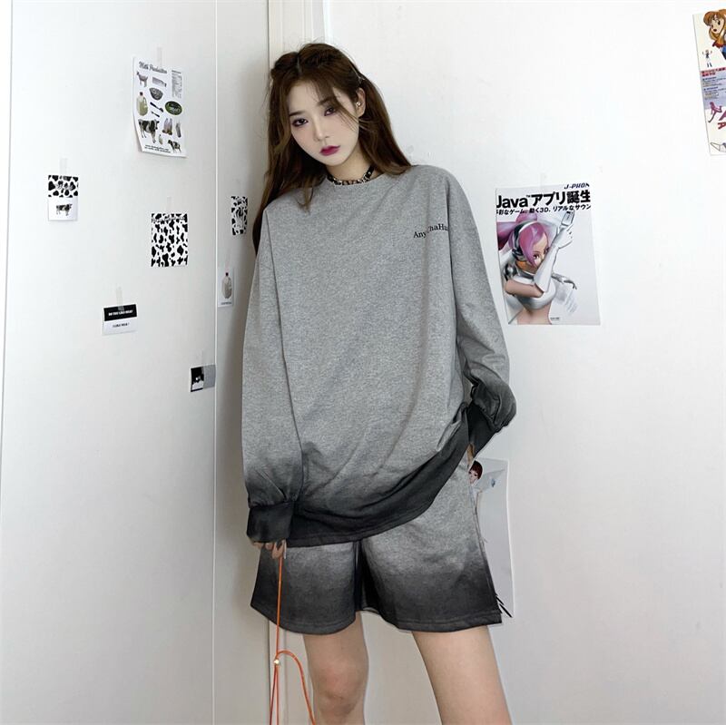 カラーラウンドネックセーター 秋物韓国ファッションNEWルーズショーツ ロング オータム Oネック スタイル 長袖 コーデ モノクロ Studio97002626596 | pLegLad Studios