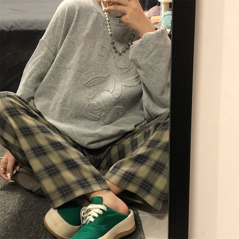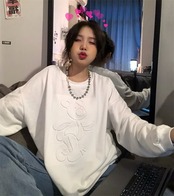 ラウンドネックセーター レディース秋物韓国ファッションNEWプリントルーズジャケット オータム Oネック スタイル コーデ モノクロ Studio48577521121 | pLegLad Studios