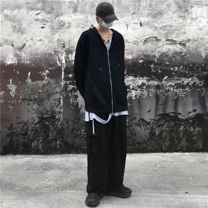 ホワイトジッパーフードセーター レディース秋物韓国ファッションNEWカラー厚みルーズトップス オータム ピュア ボーイズ スタイル コーデ モノクロ Studio56545341050 | pLegLad Studios
