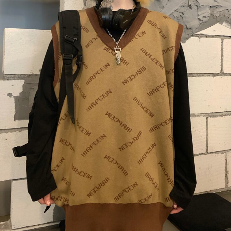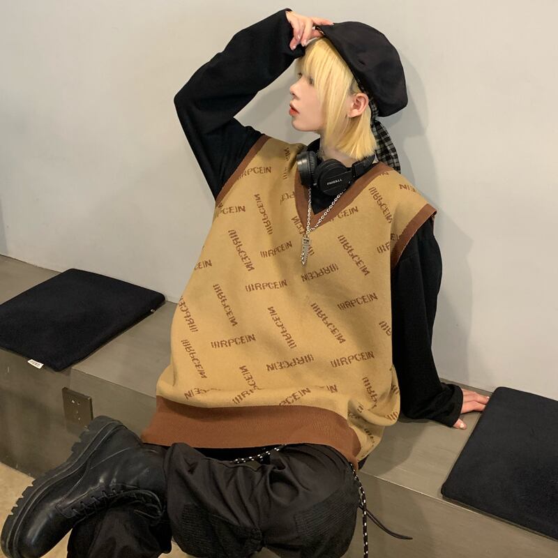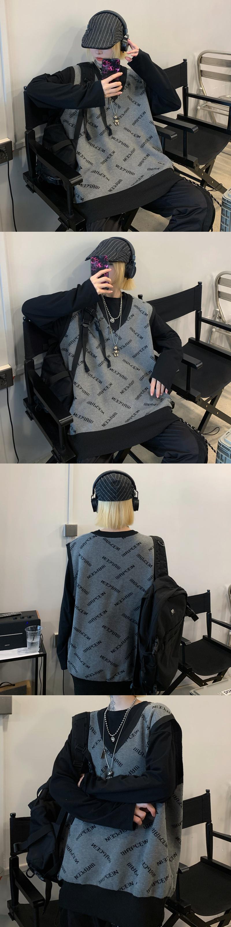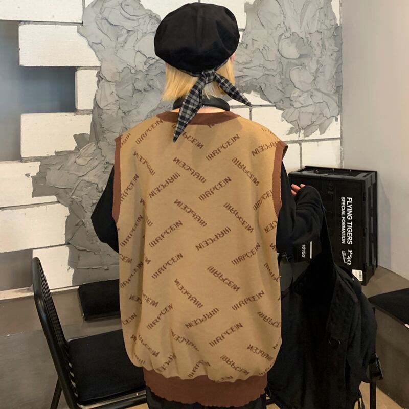 ルーズカジュアルレディース秋物韓国ファッションNEWジャカードVネックニットセーター ジャケット オータム スタイル コーデ モノクロ Studio6224360310 | pLegLad Studios