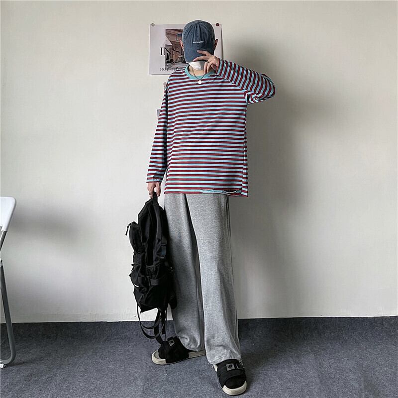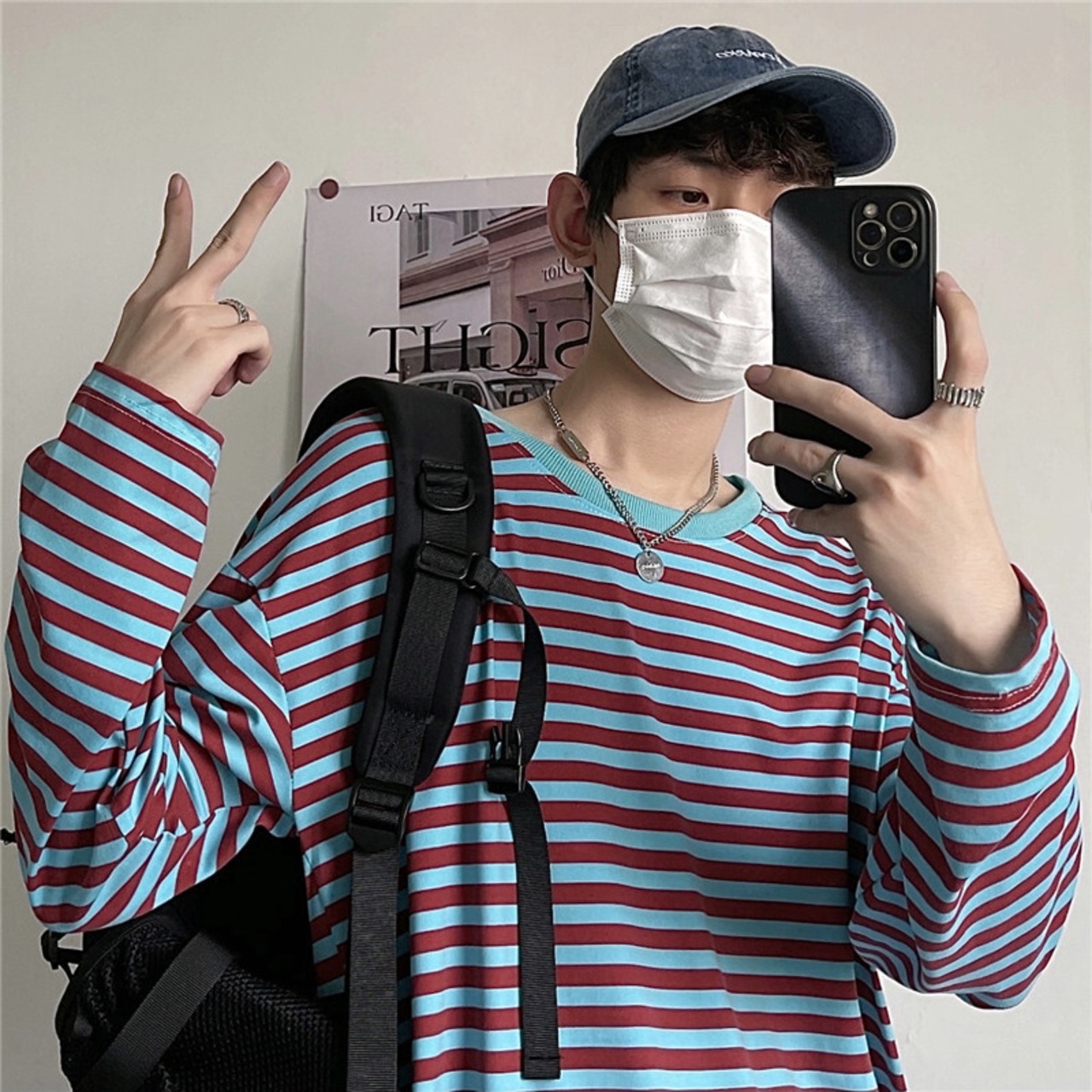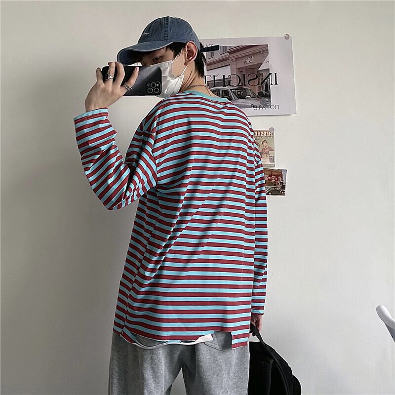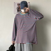 ゆったりシャツ レディース秋物韓国ファッションNEWストライプルーズTシャツトップス ロング 原宿 オータム ボーイズ スタイル 長袖 コーデ モノクロ Studio3510044716 | pLegLad Studios