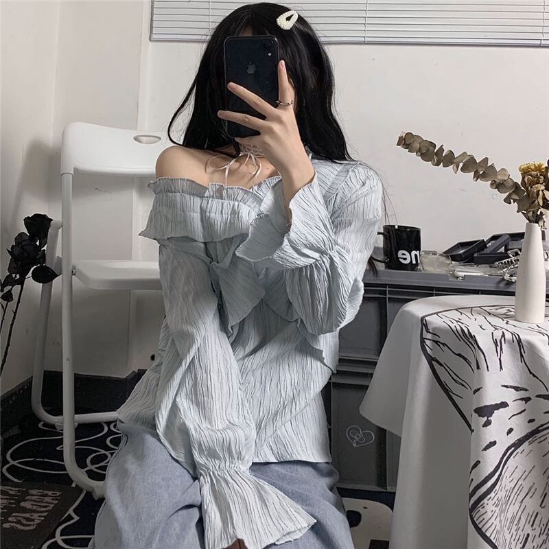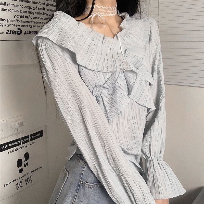 秋物韓国ファッションNEWVネッククロスシャツ ロング 大人ガーリー スウィート キュート カジュアル オータム ボーイズ スタイル 長袖 コーデ モノクロ Studio62585117927 | pLegLad Studios