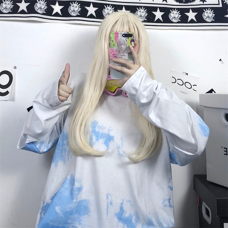 韓国ファッションTシャツシャツ レディース秋物NEWラウンドネックゆったり ロング オータム Oネック ステッチ 長袖 コーデ モノクロ Studio62427541032 | pLegLad Studios