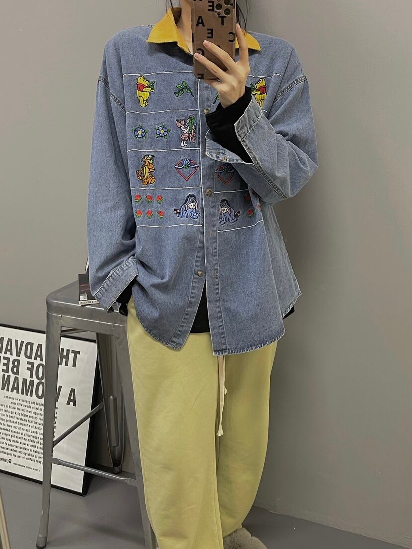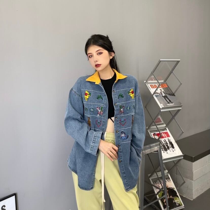 シャツ レディース秋物韓国ファッションNEW刺繍ルーズカーディガンジャケット ロング オータム ボーイズ 長袖 コーデ モノクロ Studio22087383834 | pLegLad Studios