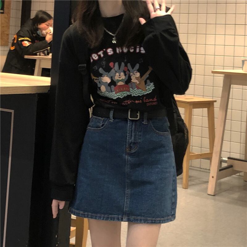 ラウンドネックTシャツシャツ レディース秋物韓国ファッションスタンダードルーズゆったり ロング レトロ オータム Oネック 長袖 コーデ モノクロ Studio12167327254 | pLegLad Studios