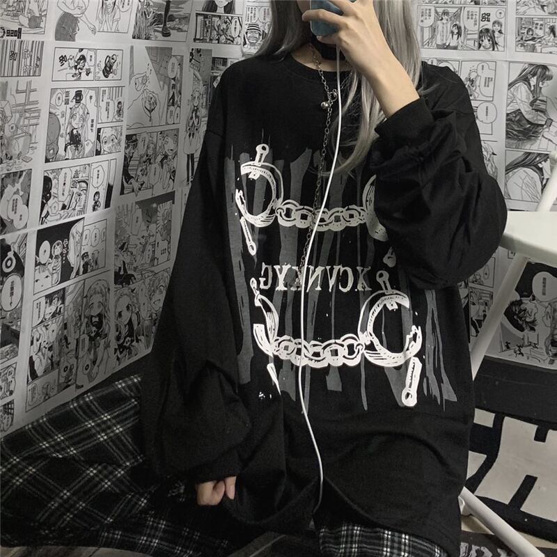スタンダード秋物セーター レディース韓国ファッションNEWプリントラウンドネックトップス ロング レトロ オータム Oネック スタイル 長袖 コーデ モノクロ Studio90992403316 | pLegLad Studios