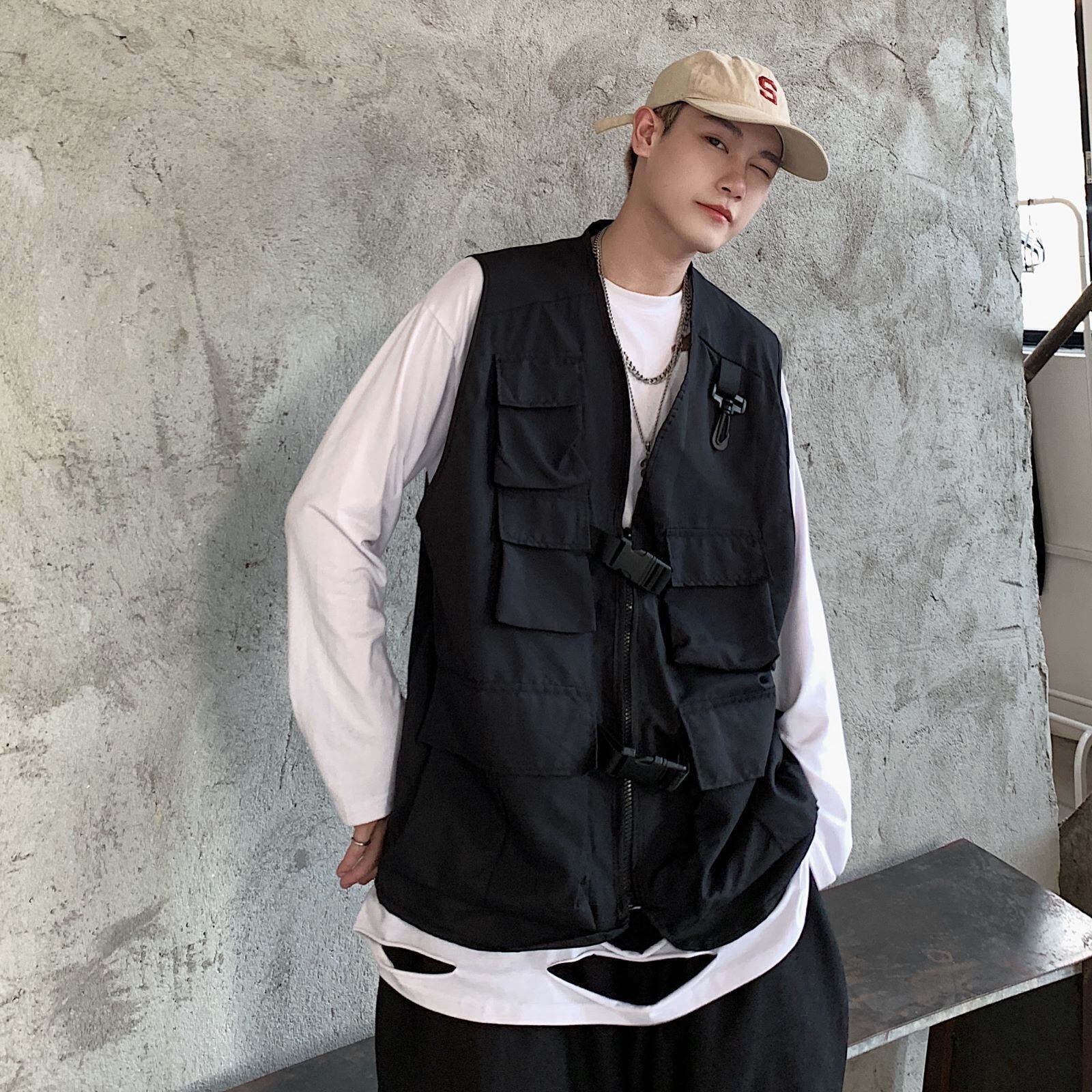 スタンダードレディース秋物韓国ファッションNEWトップス レトロ オータム ポケット多め マルチポケット スタイル ウエスト コーデ モノクロ Studio41530246865 | pLegLad Studios