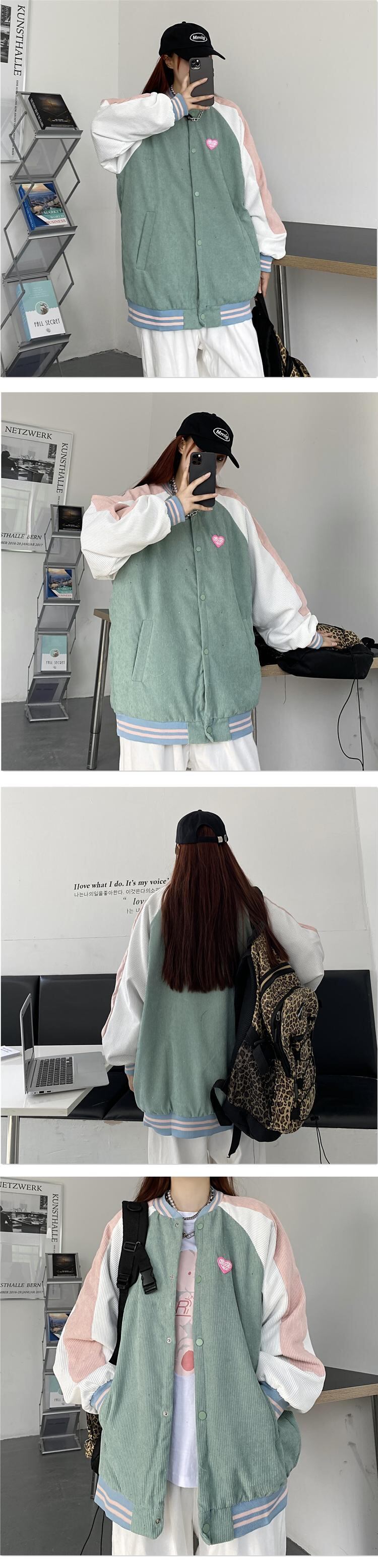 コーデュロイジャケット レディース秋物韓国ファッションNEWルーズトップス ロング オータム ステッチ スタイル 長袖 コーデ モノクロ Studio96574719902 | pLegLad Studios