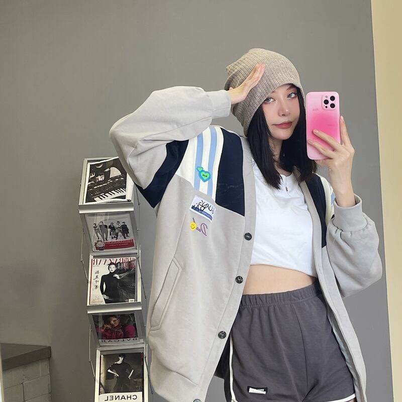秋物ルーズジャケット レディース韓国ファッションNEWプリントカジュアルニットカーディガントップス オータム ボーイズ スタイル コーデ モノクロ Studio57865474385 | pLegLad Studios