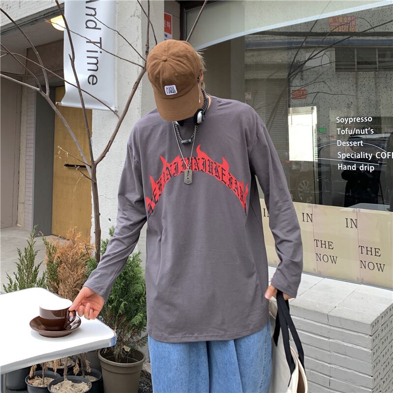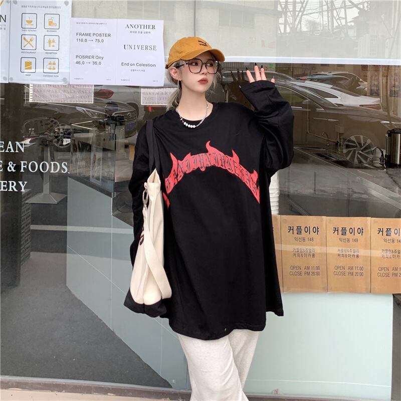 秋物Tシャツシャツ レディース韓国ファッションNEWダークプリントルーズゆったり ロング オータム スタイル 長袖 コーデ モノクロ Studio32414902092 | pLegLad Studios