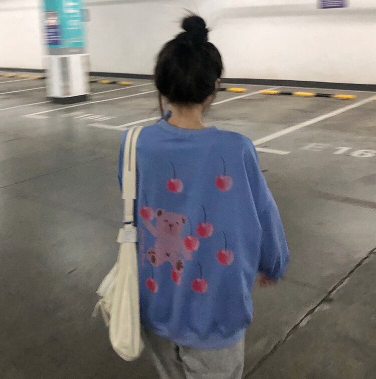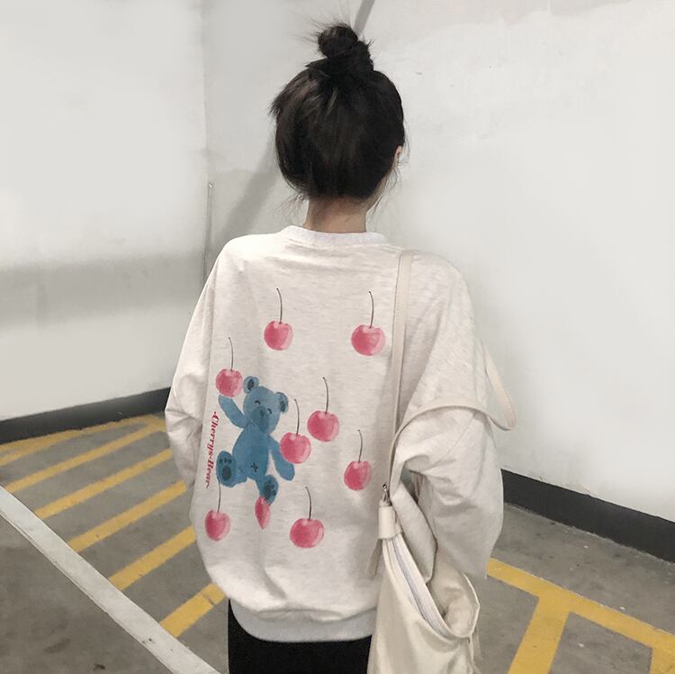 色:白い背中と桜のクマのセーター,カイランバックチェリーベアセーター