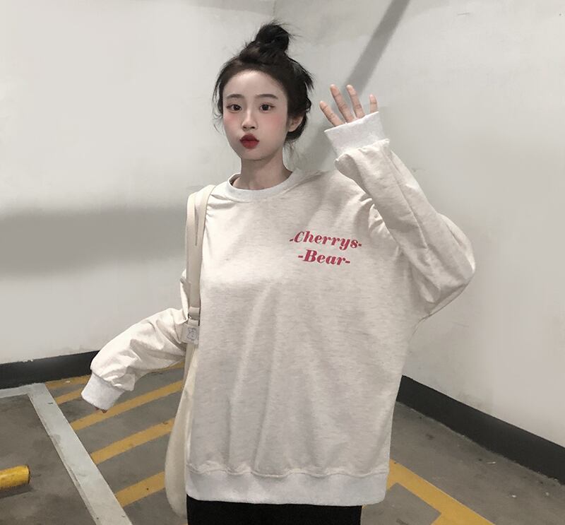 セーター レディース秋物韓国ファッションNEWプリント柄ルーズラウンドネックトップス コート ロング オータム Oネック スタイル 長袖 コーデ モノクロ Studio78056647008 | pLegLad Studios