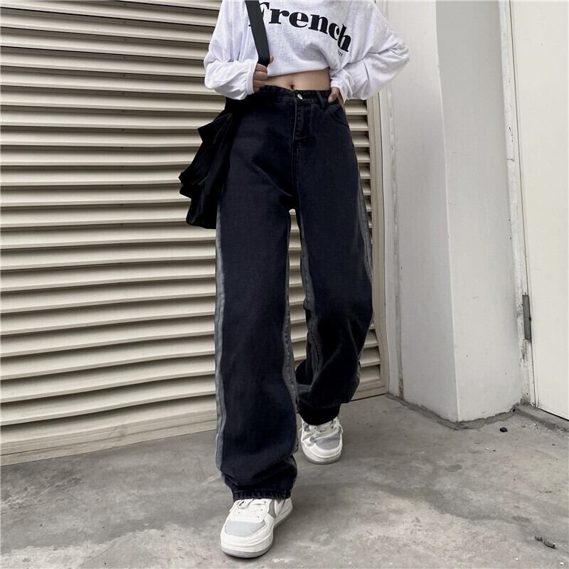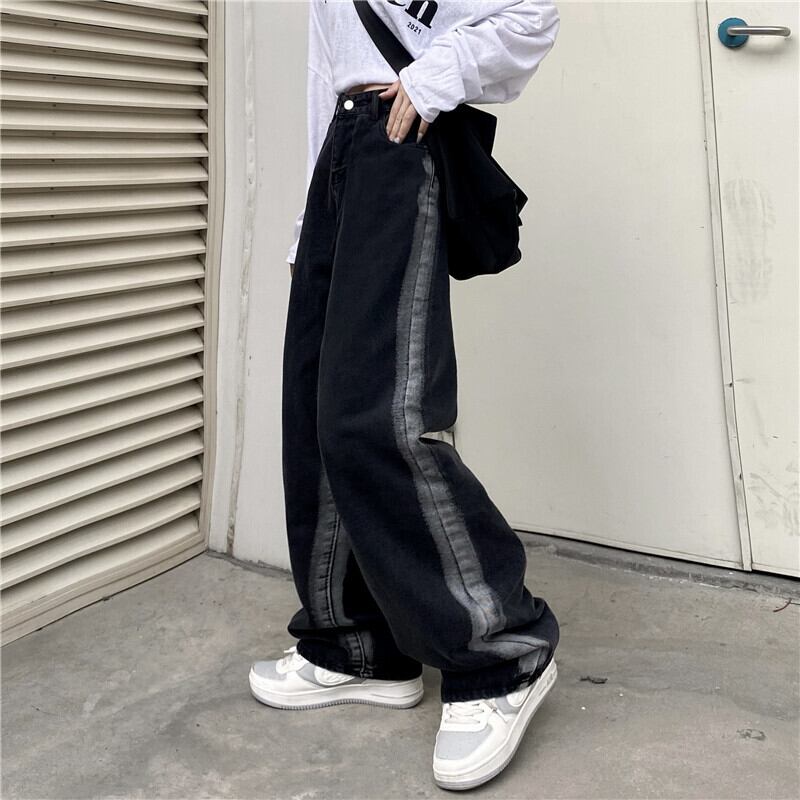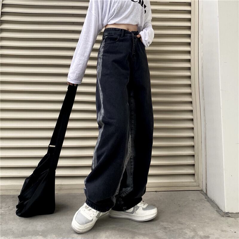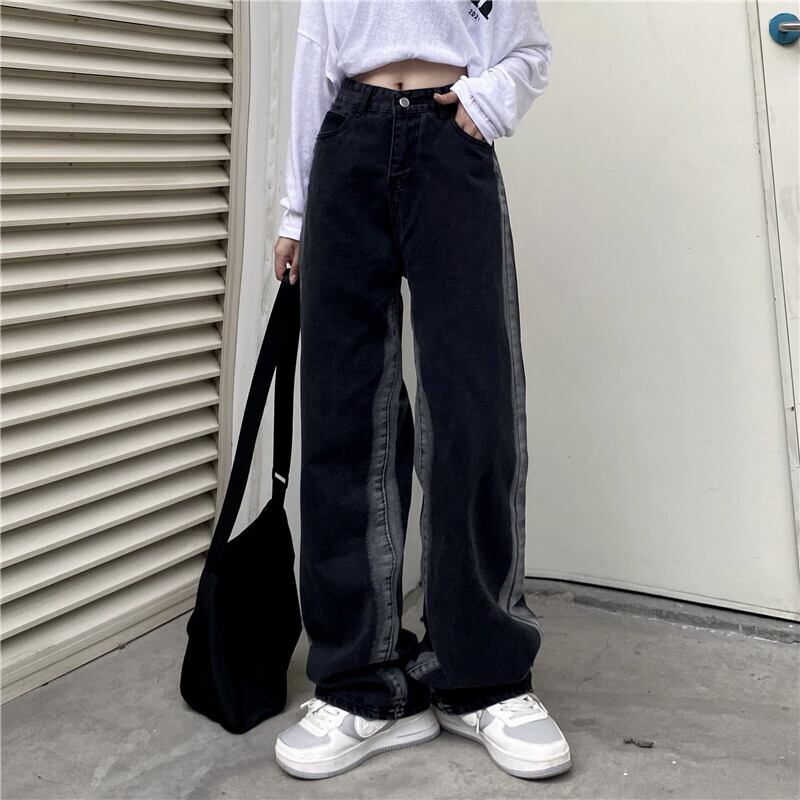 スタンダードカラージーンズ 秋物韓国ファッションスタイルパンツ ルーズハイウェストウェストワイドレッグ レトロ オータム ワイドパンツ ウエスト コーデ モノクロ Studio41912156356 | pLegLad Studios