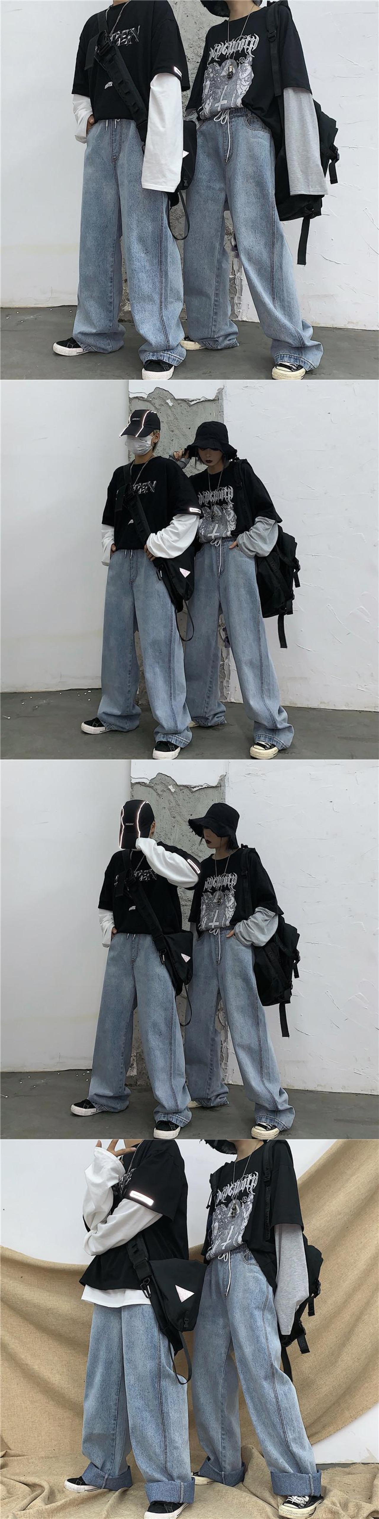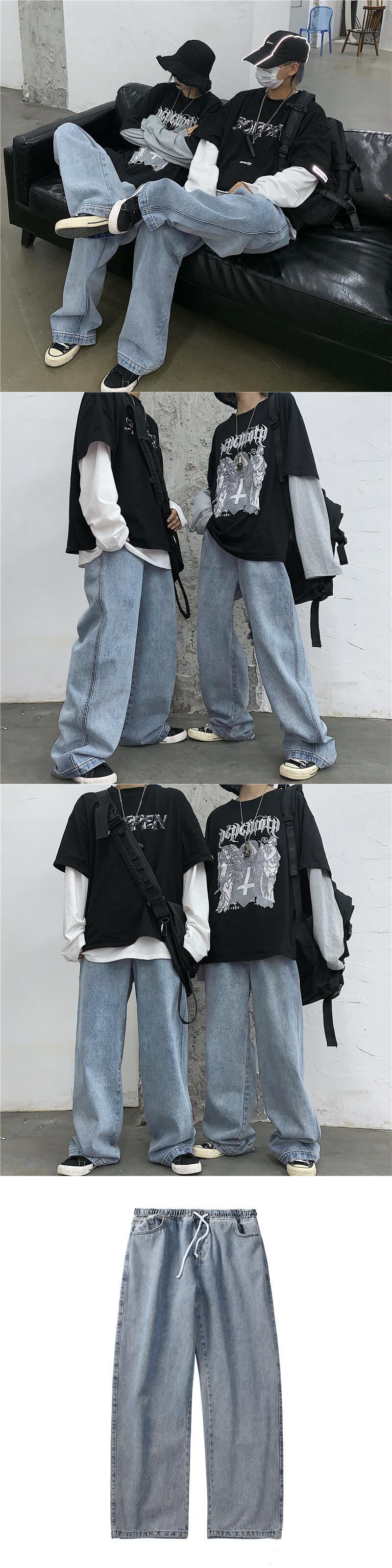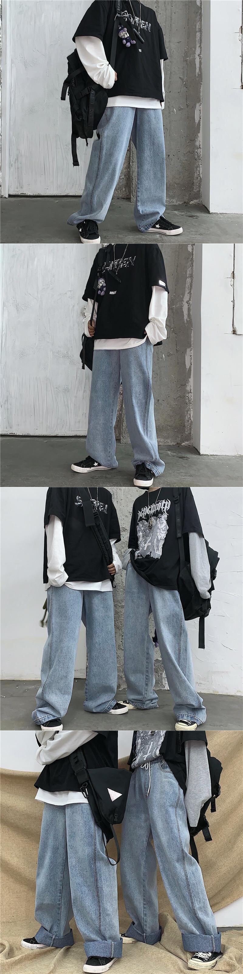 ストレッチウェストジーンズ 秋物スタイル韓国ファッションルーズパンツ エラスティック 伸縮 オータム ボーイズ ウエスト コーデ モノクロ Studio85499047973 | pLegLad Studios