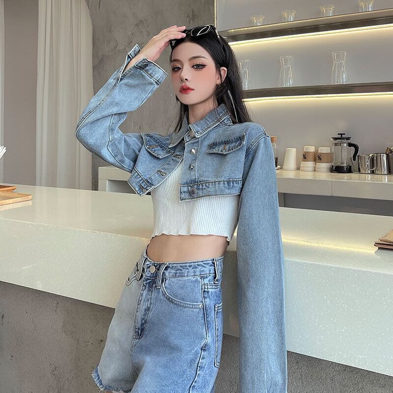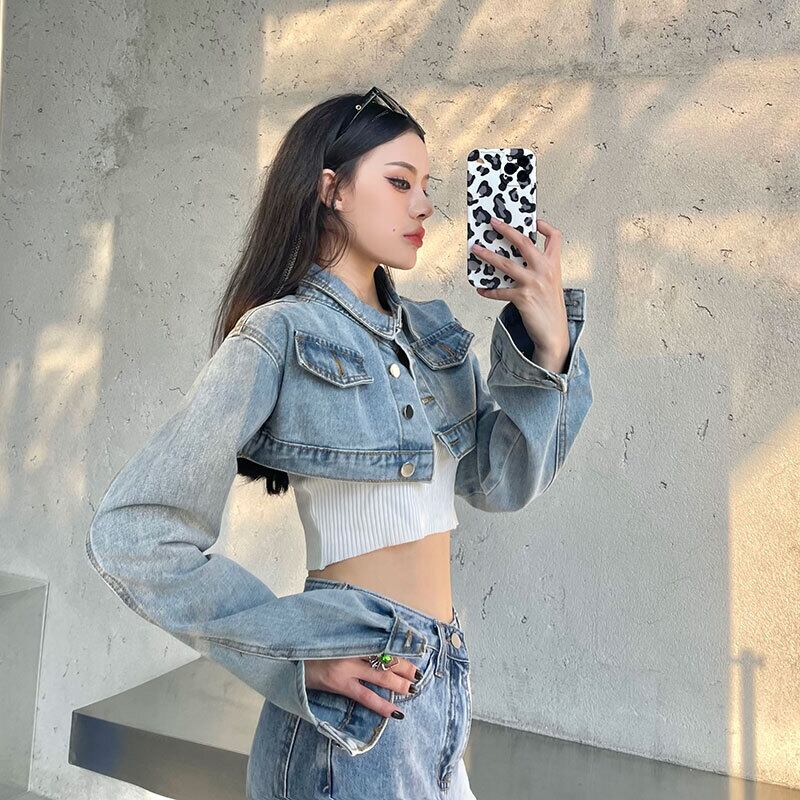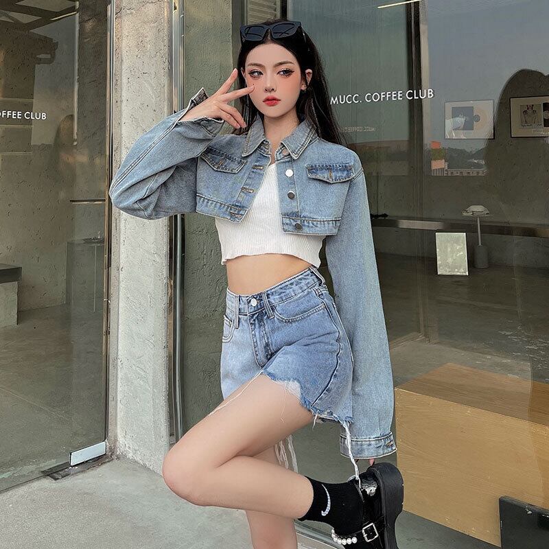 秋物韓国ファッションNEWスタンダードショートルーズジャケット レディース レトロ ストリート オータム スタイル コーデ モノクロ Studio2072448374 | pLegLad Studios