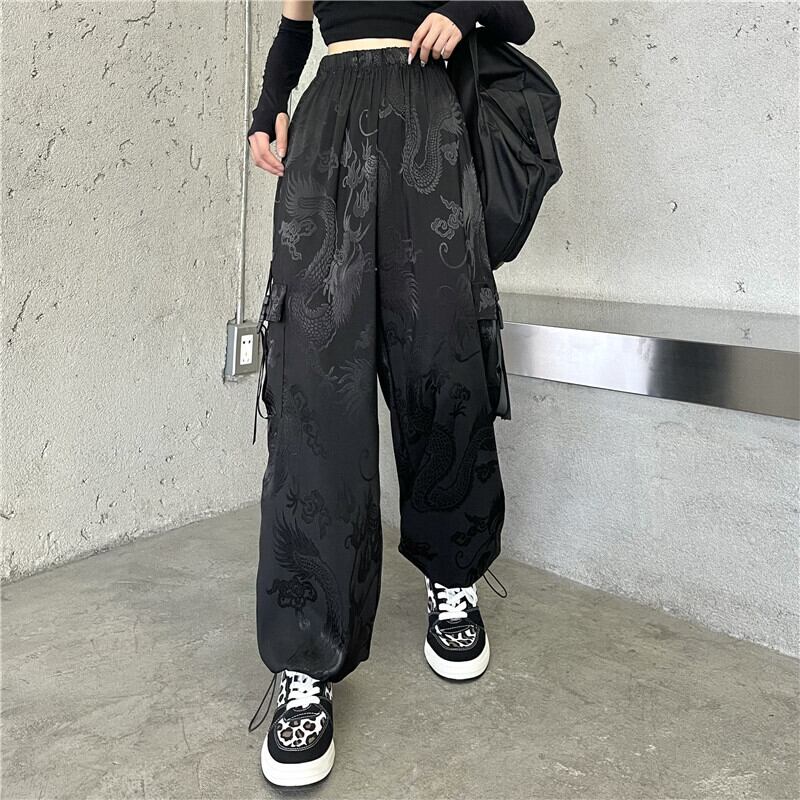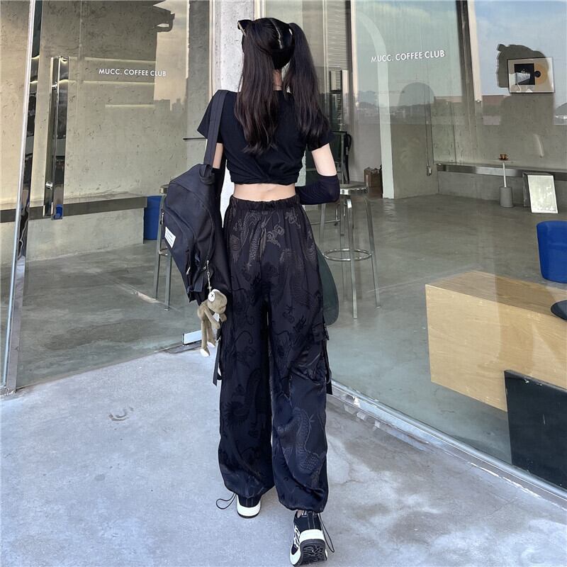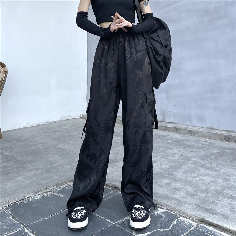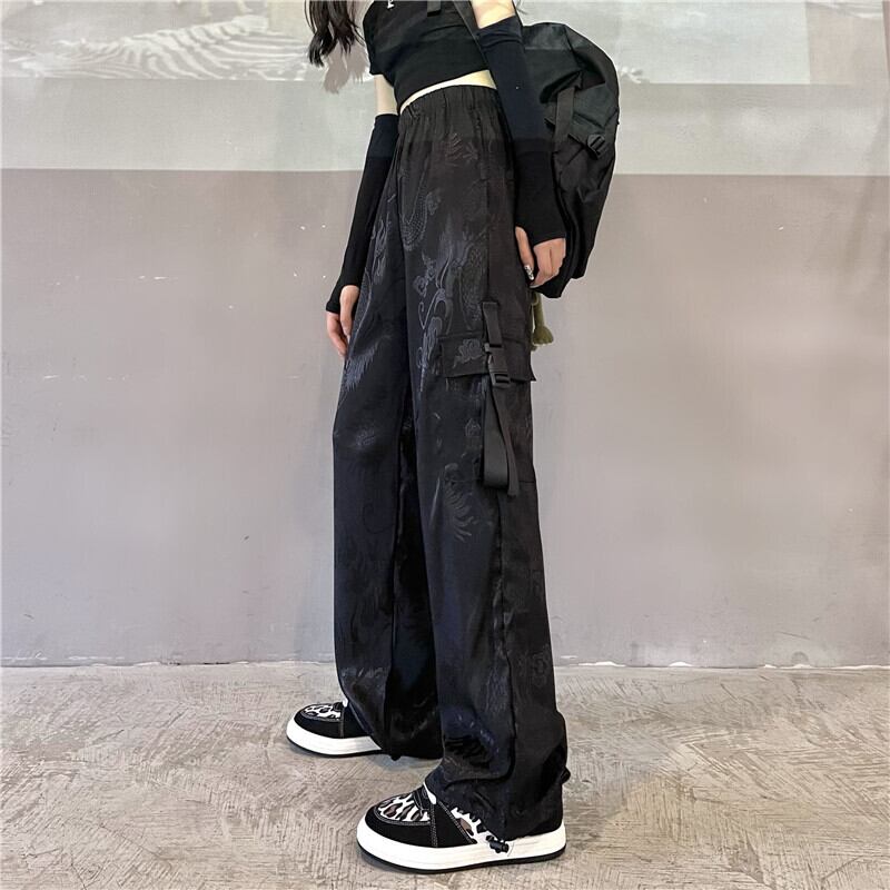 スタンダードパターンカジュアルパンツ レディース夏服スタイル韓国ファッション薄手ルーズワイドレッグ レトロ 夏物 ワイドパンツ コーデ モノクロ Studio81829625704 | pLegLad Studios