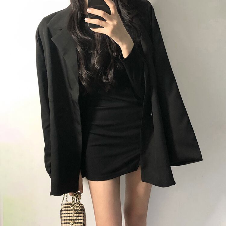 色:黒のワンピース,黒いスーツのワンピース
