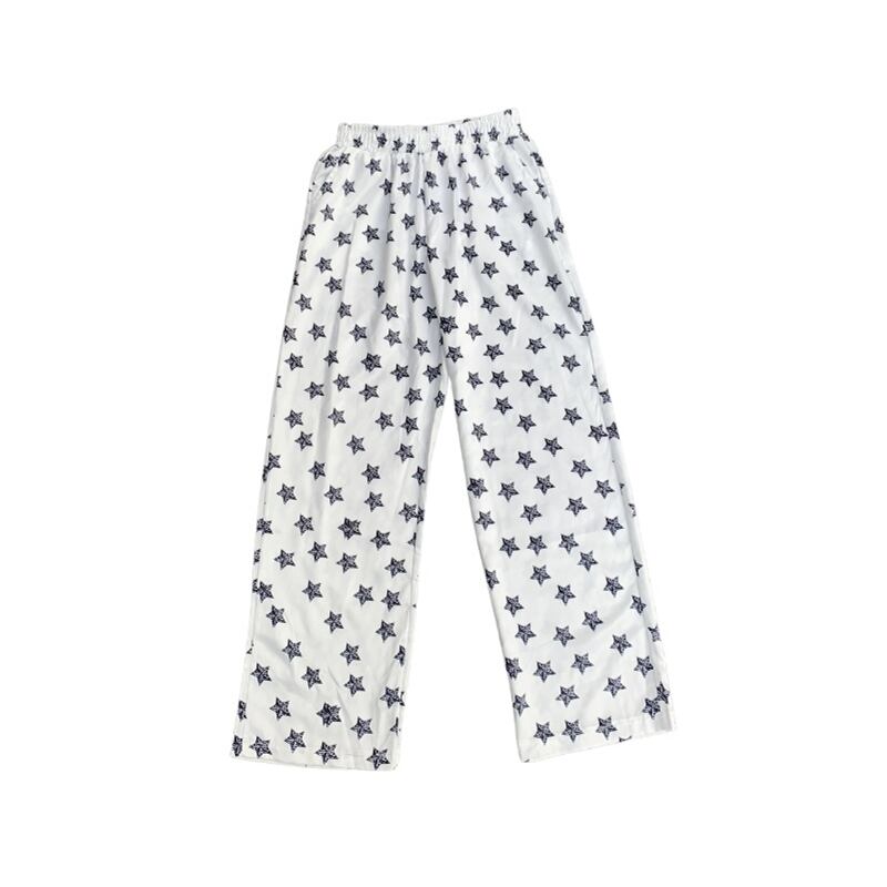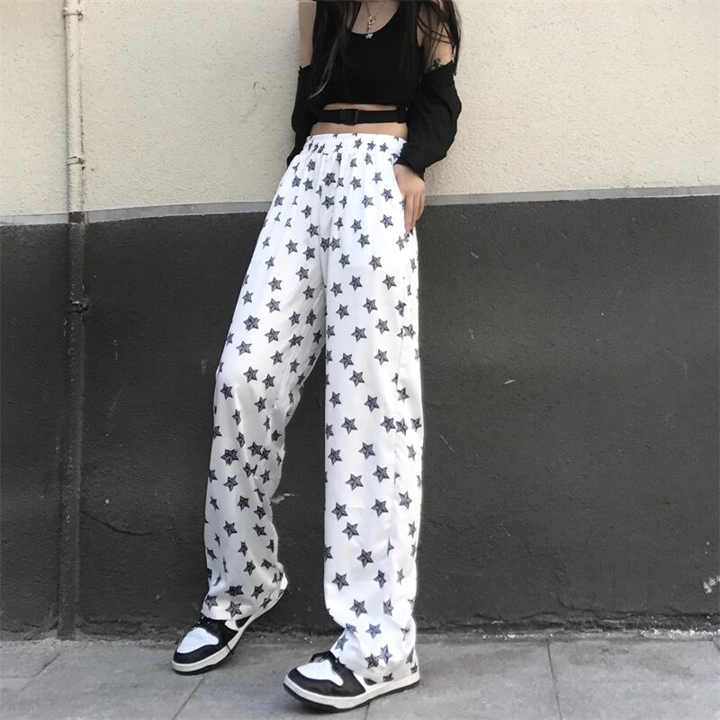 韓国ファッションカジュアルパンツ 夏服スタンダードプリントルーズハイウェストウェストワイドレッグ レトロ 夏物 ワイドパンツ スタイル ウエスト コーデ モノクロ Studio66250950467 | pLegLad Studios