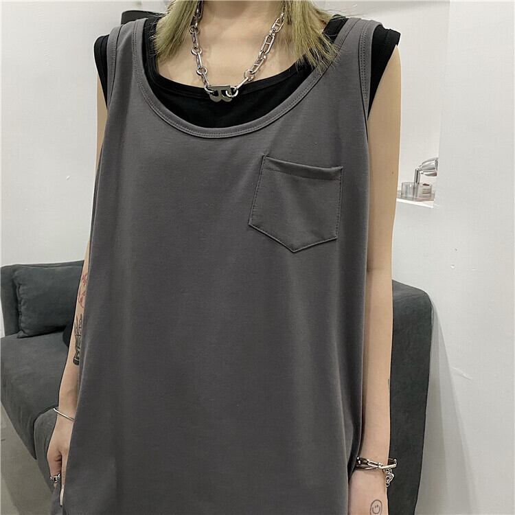 ノースリーブTシャツレディース夏服韓国ファッションNEWルーズカジュアルラウンドネックトップス 夏物 Oネック ボーイズ スタイル コーデ モノクロ Studio95275073759 | pLegLad Studios