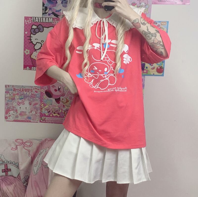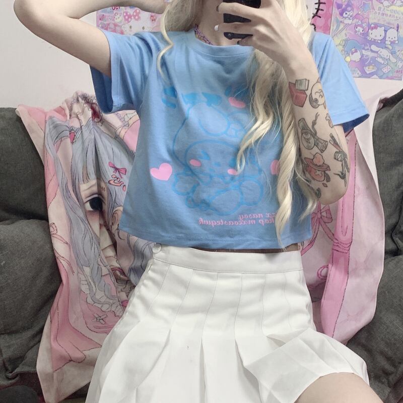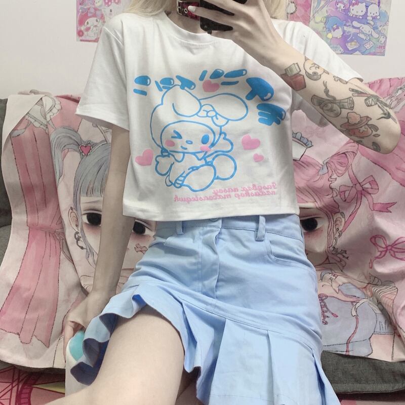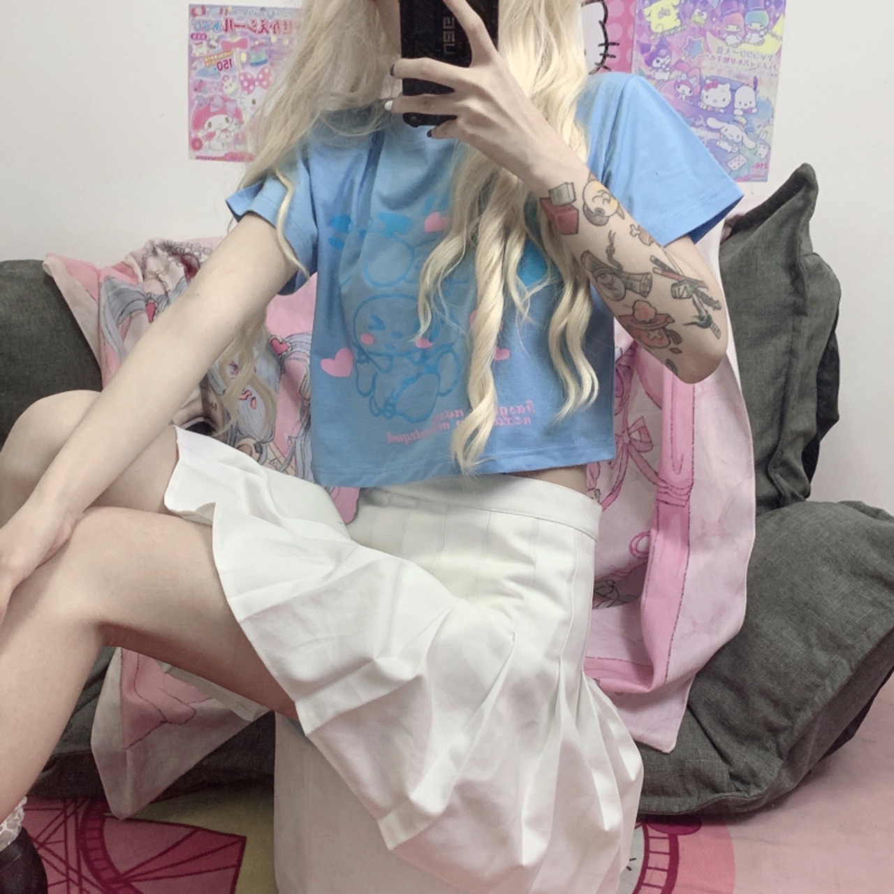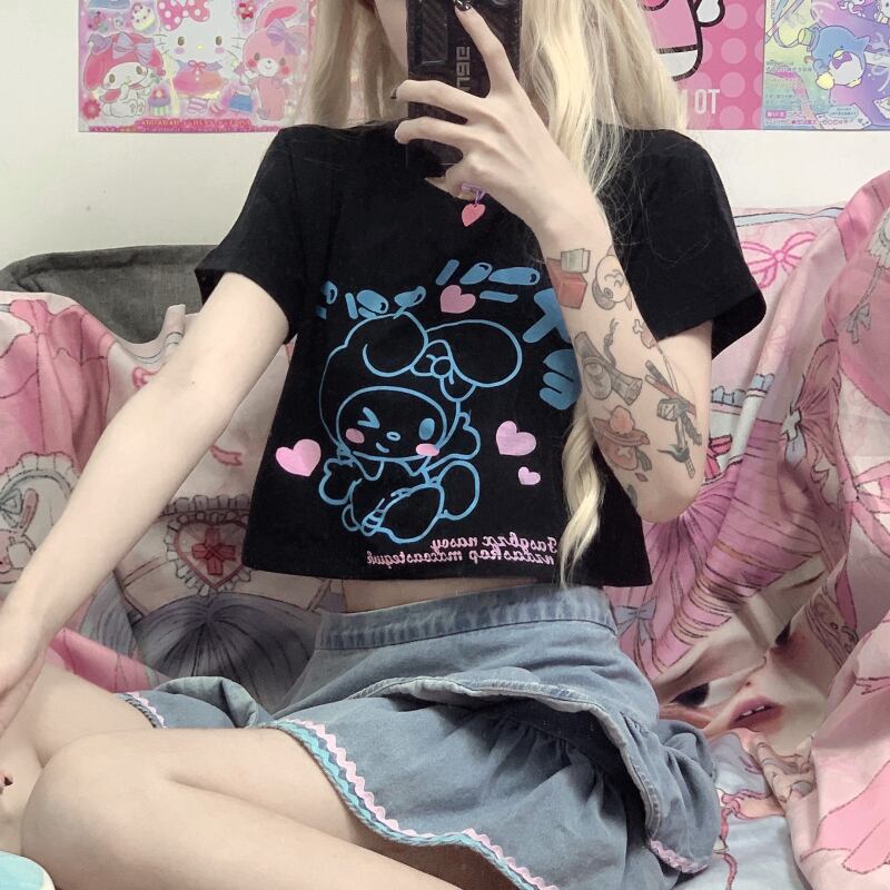 夏服ショートカジュアルTシャツシャツ レディース韓国ファッションNEWプリント柄 大人ガーリー スウィート キュート 夏物 スタイル コーデ モノクロ Studio27569008506 | pLegLad Studios