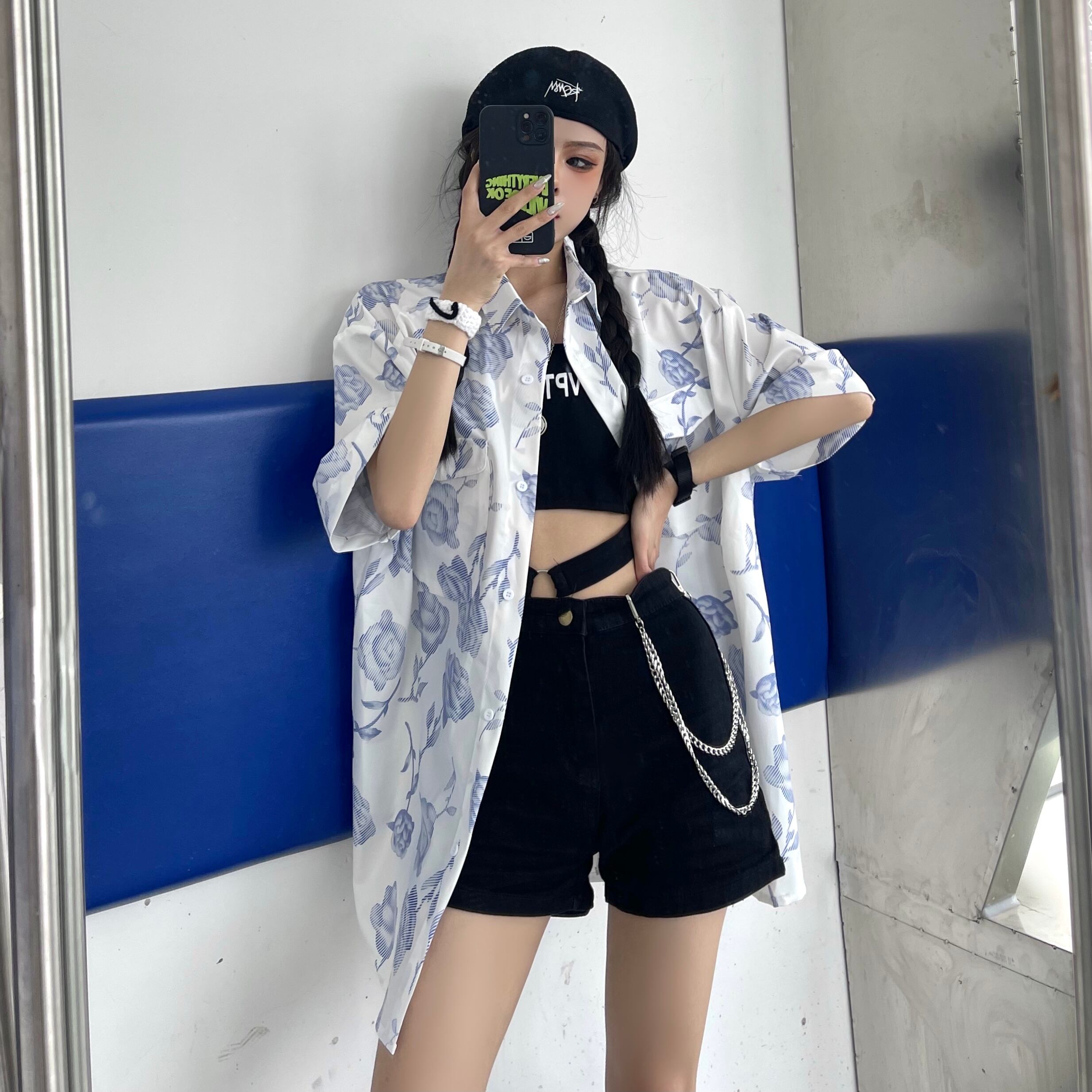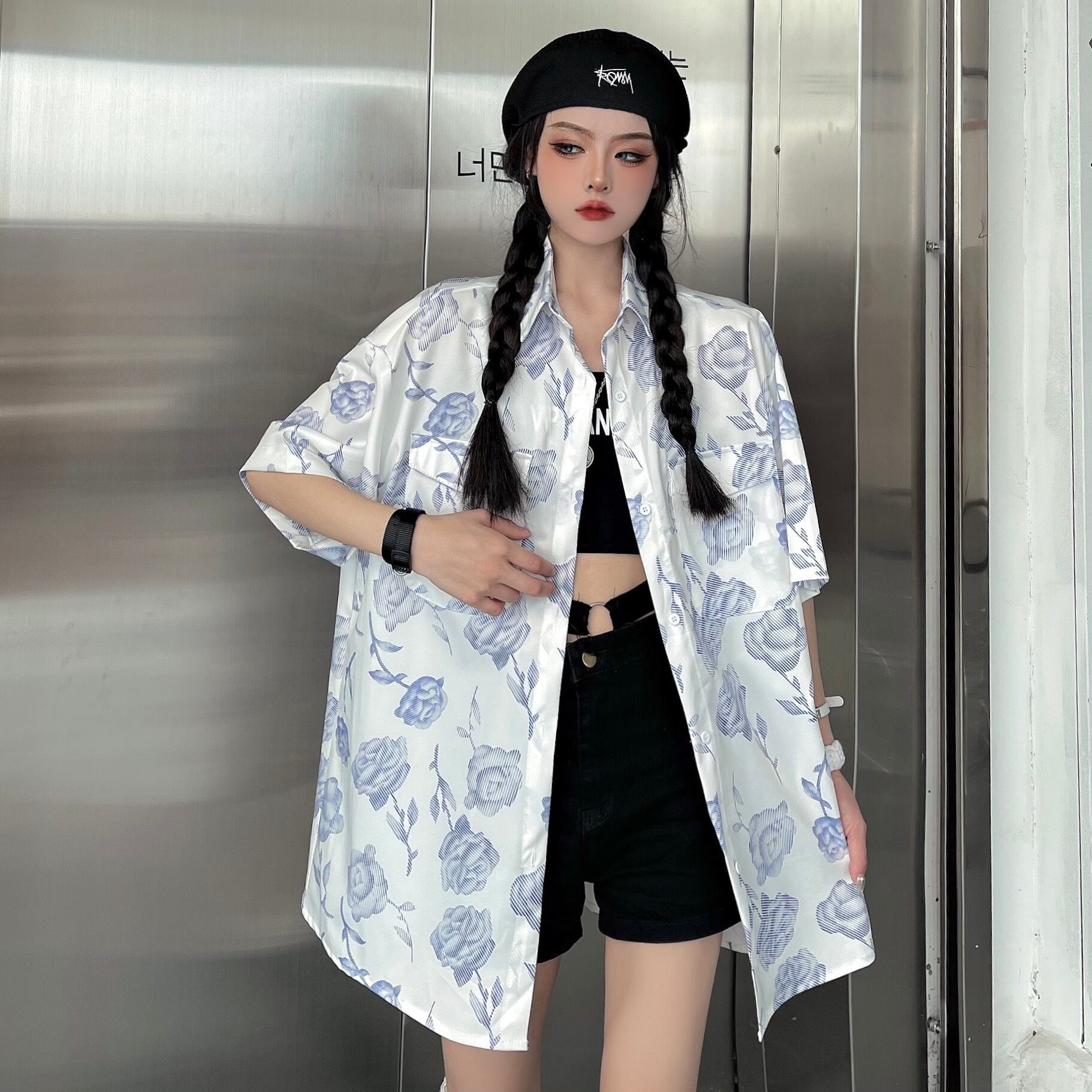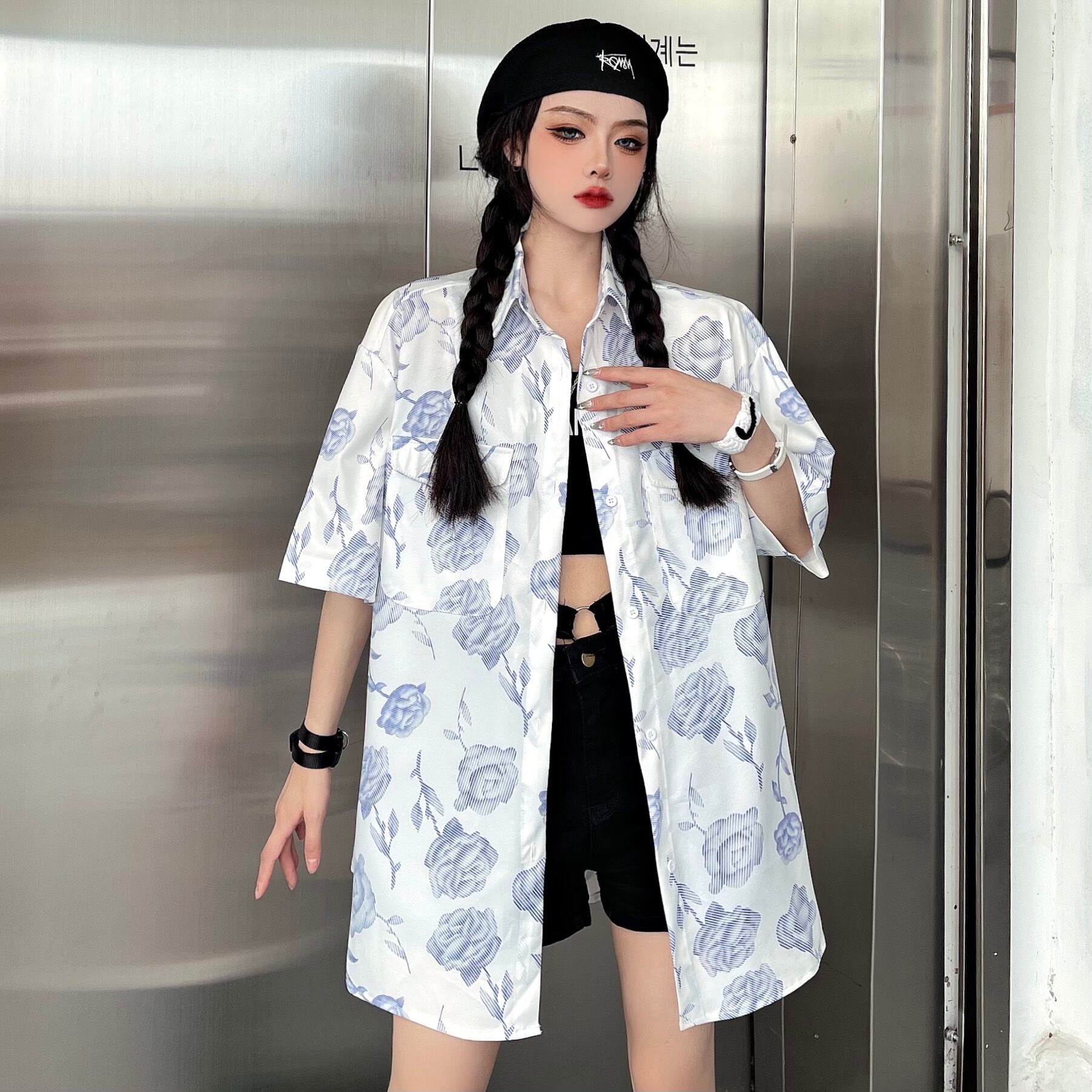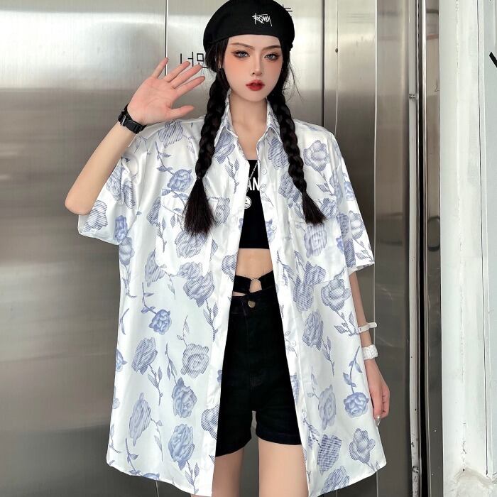スタンダードFlowerデザイン ルーズシャツ レディース夏服スタイル韓国ファッションNEWスリム レトロ 夏物 フラワーデザイン コーデ モノクロ Studio3717279480 | pLegLad Studios