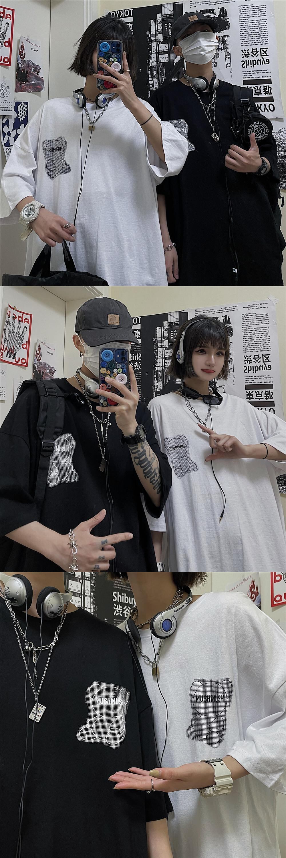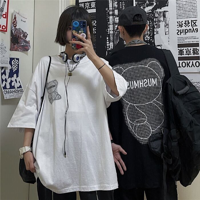 Tシャツシャツ レディース夏服韓国ファッションNEWスタンダード格子柄プリント柄ルーズゆったり レトロ 夏物 ボーイズ スタイル コーデ モノクロ Studio49689637215 | pLegLad Studios