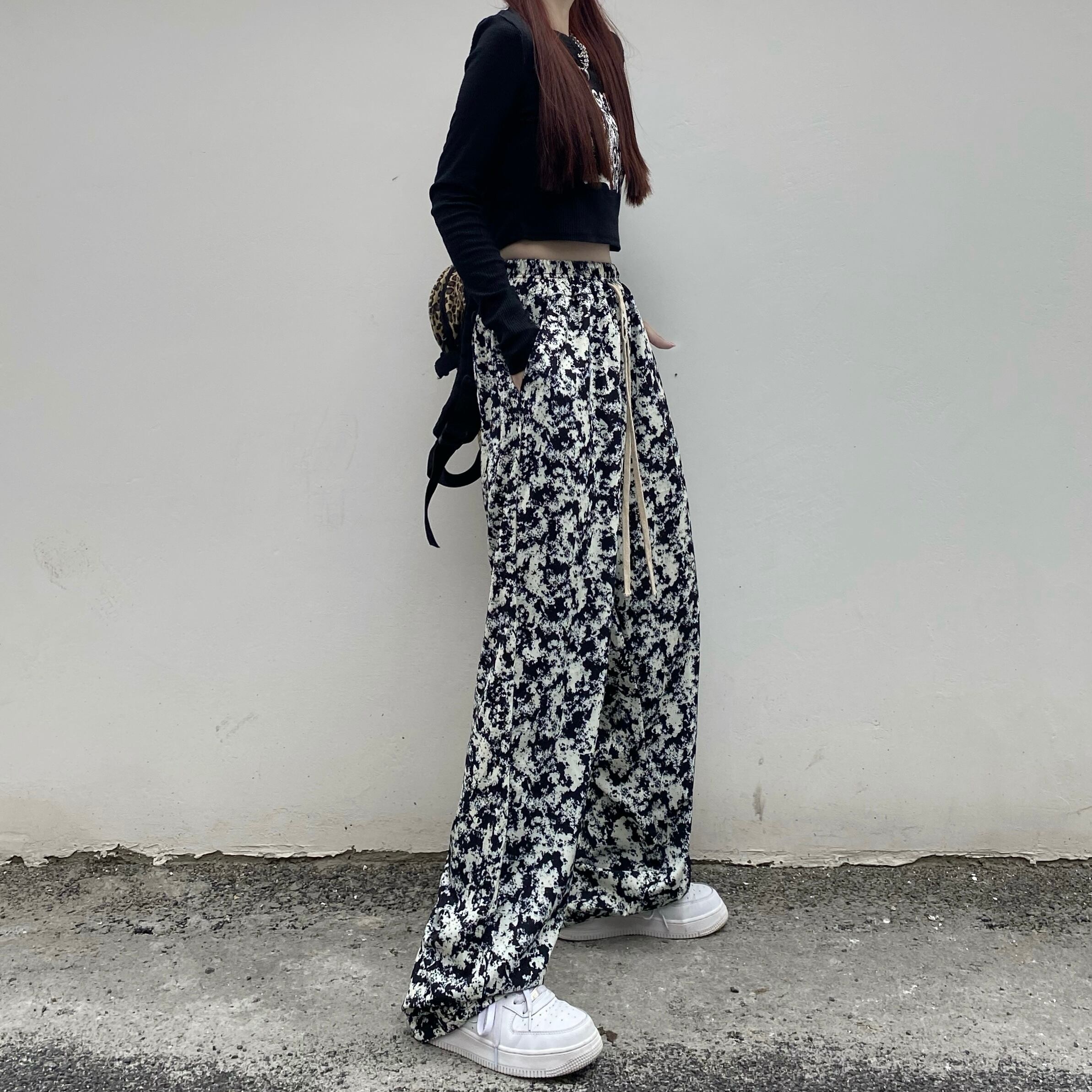 韓国ファッションハイウェストウェストカジュアルパンツ レディース夏服NEWスタンダードワイドレッグ レトロ ストリート 夏物 ワイドパンツ スタイル ウエスト コーデ モノクロ Studio28654188844 | pLegLad Studios