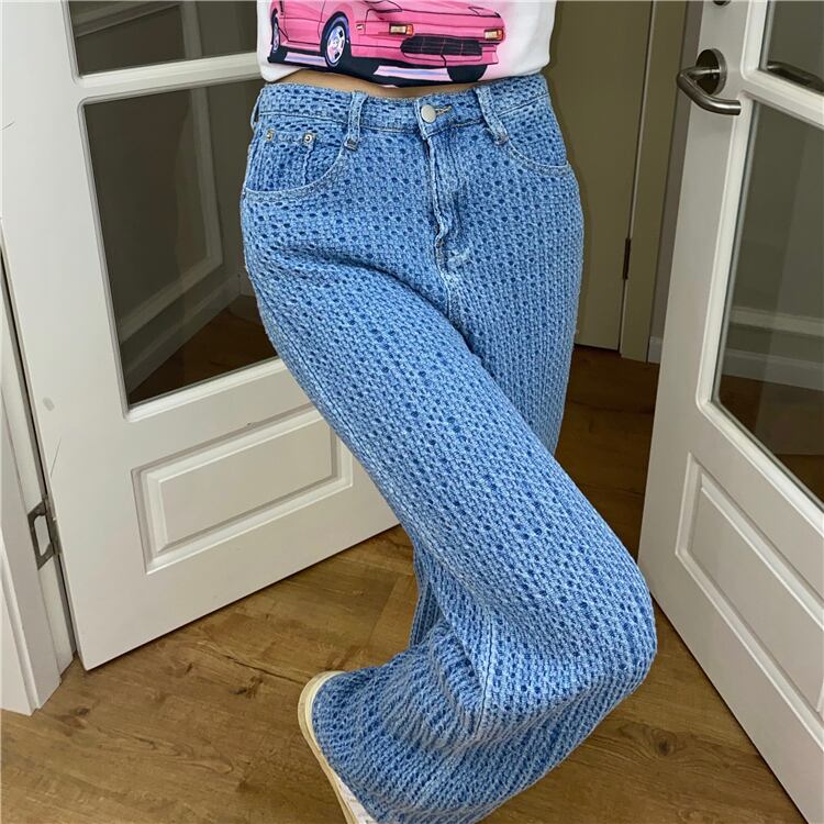 ジーンズ レディース夏服スタイル韓国ファッション薄手ルーズハイウェストウェストワイドレッグパンツ 夏物 ワイドパンツ ウエスト コーデ モノクロ Studio65901815396 | pLegLad Studios