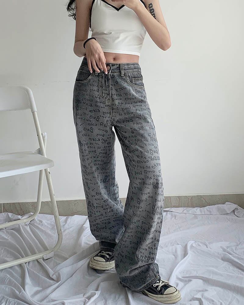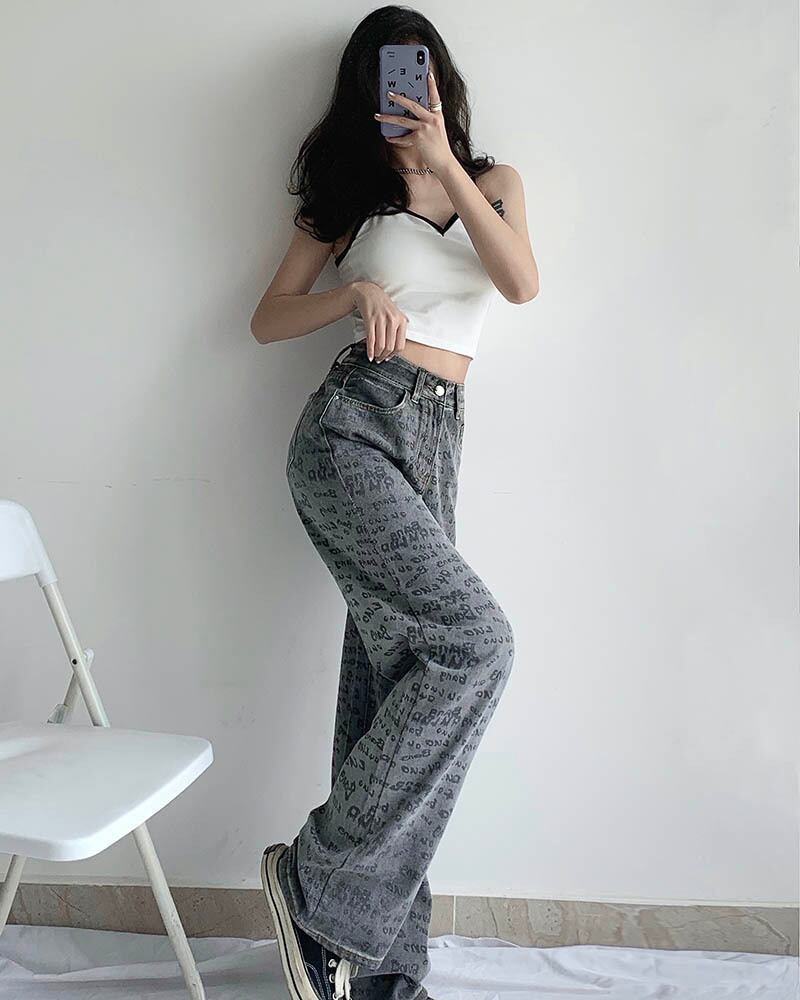 韓国ファッションハイウェストジーンズ レディース夏服ルーズカジュアルパンツ 原宿 夏物 ボーイズ スタイル ウエスト コーデ モノクロ Studio35333118657 | pLegLad Studios