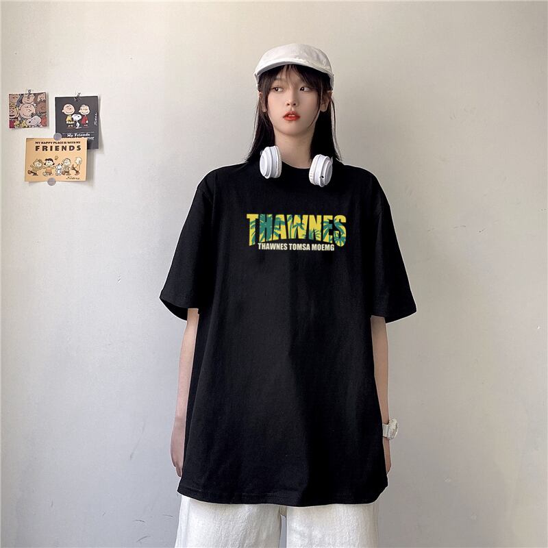 Tシャツシャツ レディース夏服韓国ファッションNEWプリントルーズラウンドネックゆったり 夏物 Oネック スタイル コーデ モノクロ Studio82708105714 | pLegLad Studios